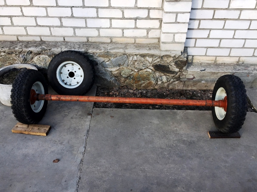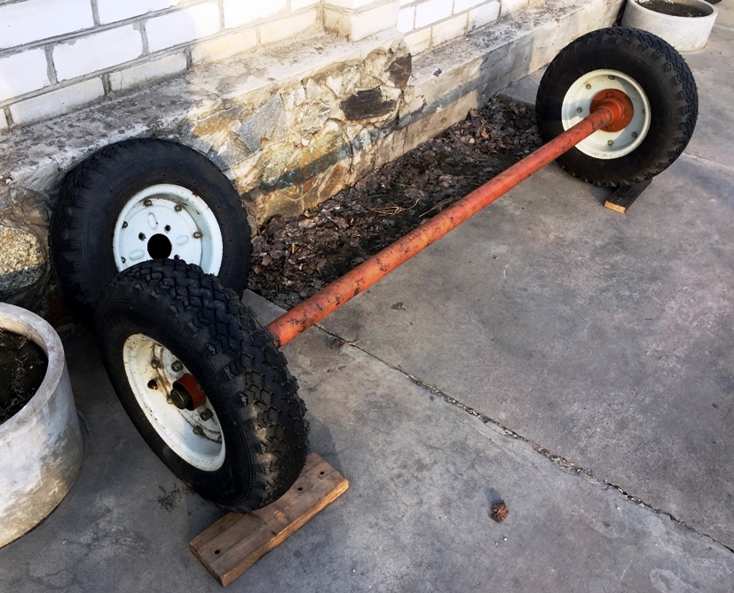 Продам новую ось для прицепа или лафета. С колёсами + запаска.