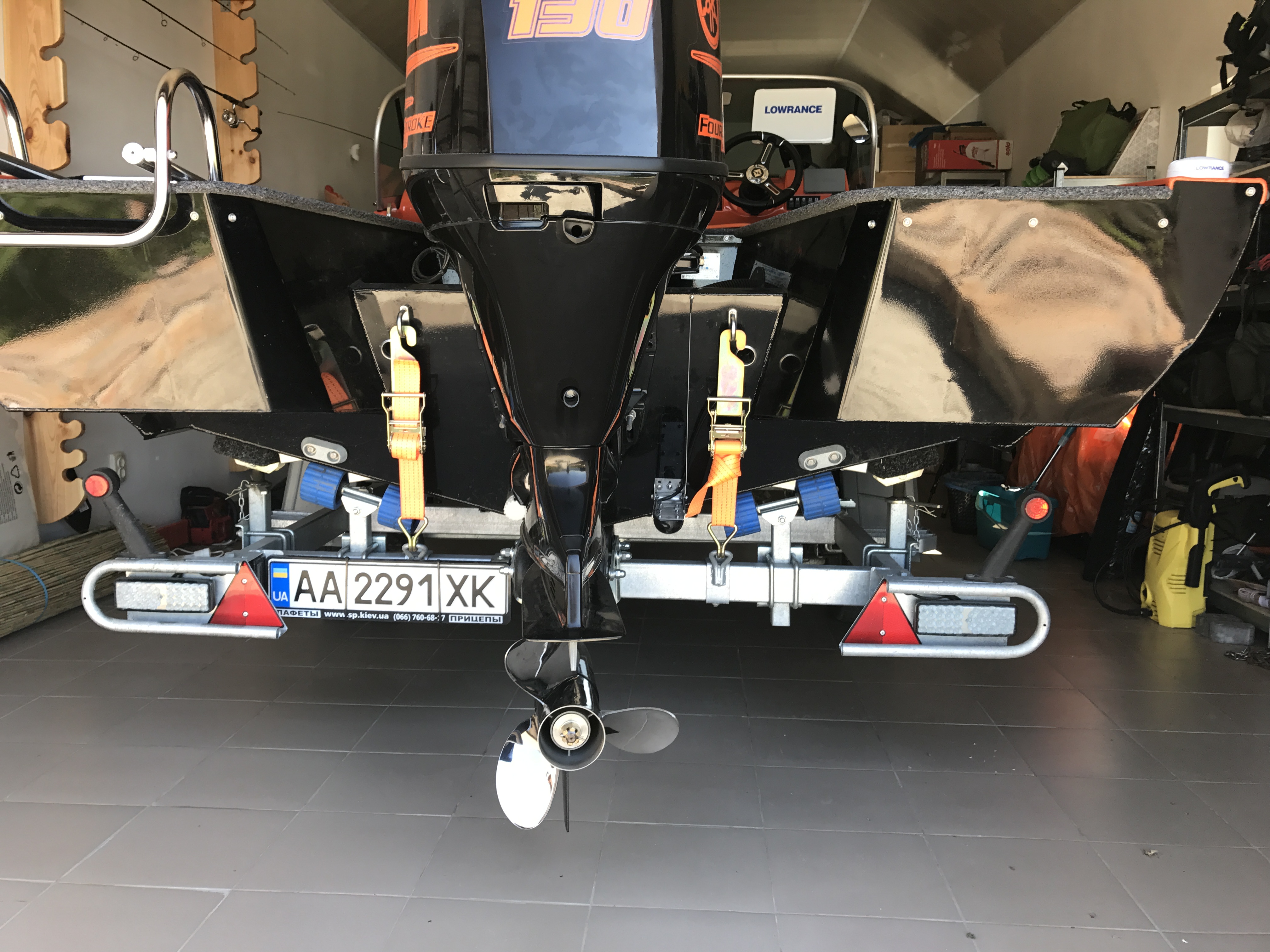 У мну вот так. Думаю можно пробовать сместить проушины на лафете ближе к килю - два ремня в раскос не должны играть.