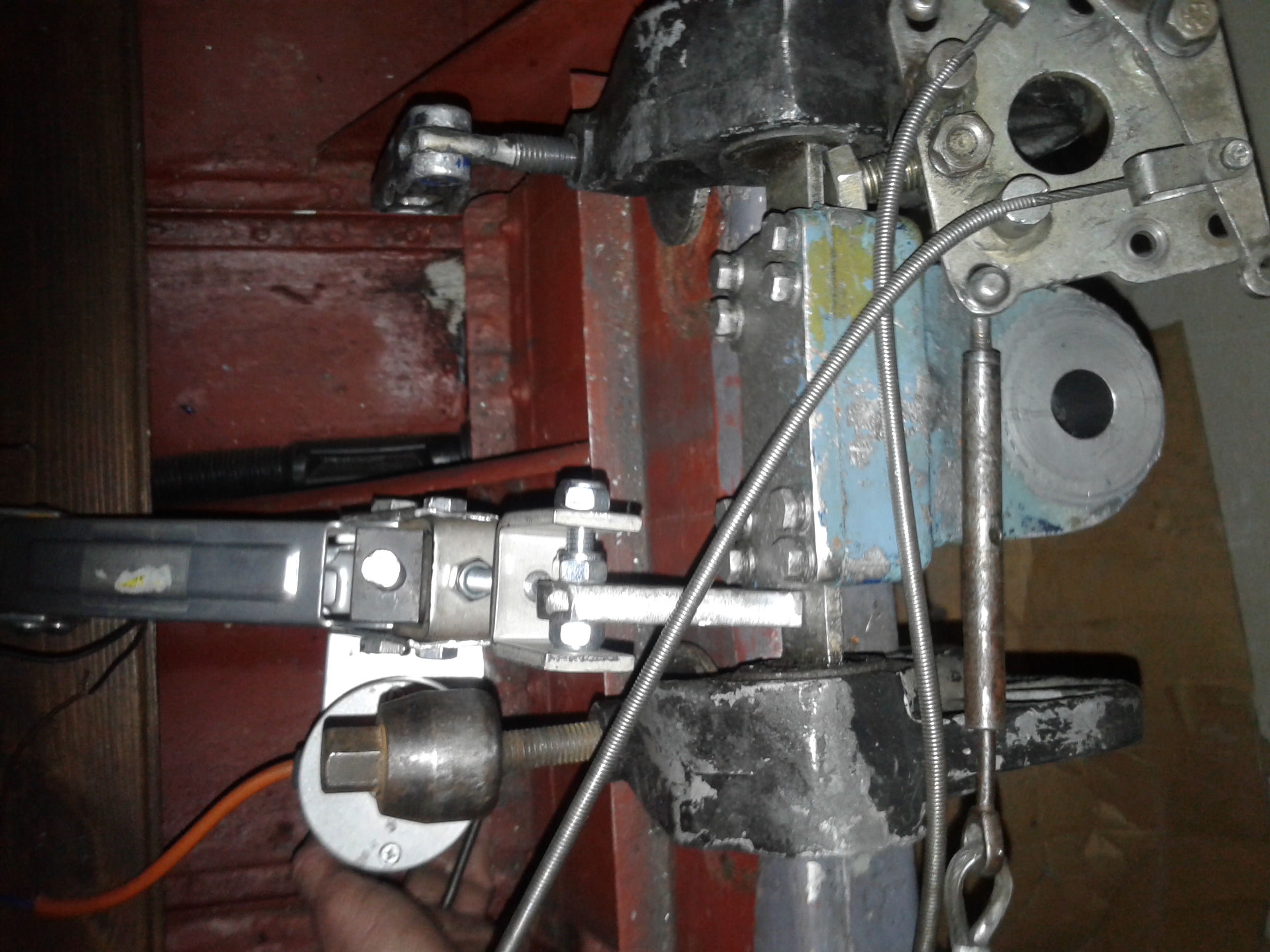 вот сегодня поднял-опустил прототпи...меня устраивает скорость подъёиа)8 сек выход редуктора из воды...(ну выход выше ватерлинии) я рад...но при определении места крепления редуктора возник нюанс...(при испытании держал рукой сам домкрат,при подъёме смещает на 2-2,5 см...отсюда вывод , что нужно уменьшать саму ту конструкцию что гродил, типа скоба к скобе)это говорит в сторону плюса к тому что нужно не "косточку"а именно изменяемую и подгоняемую по месту крепления домкрата конструкцию...испытания показали необходимость уменьшения рычага на 2,5 см)поэтому вот это----скоба болт скоба.... надо укорачивать по месту,у других может быть по другому...