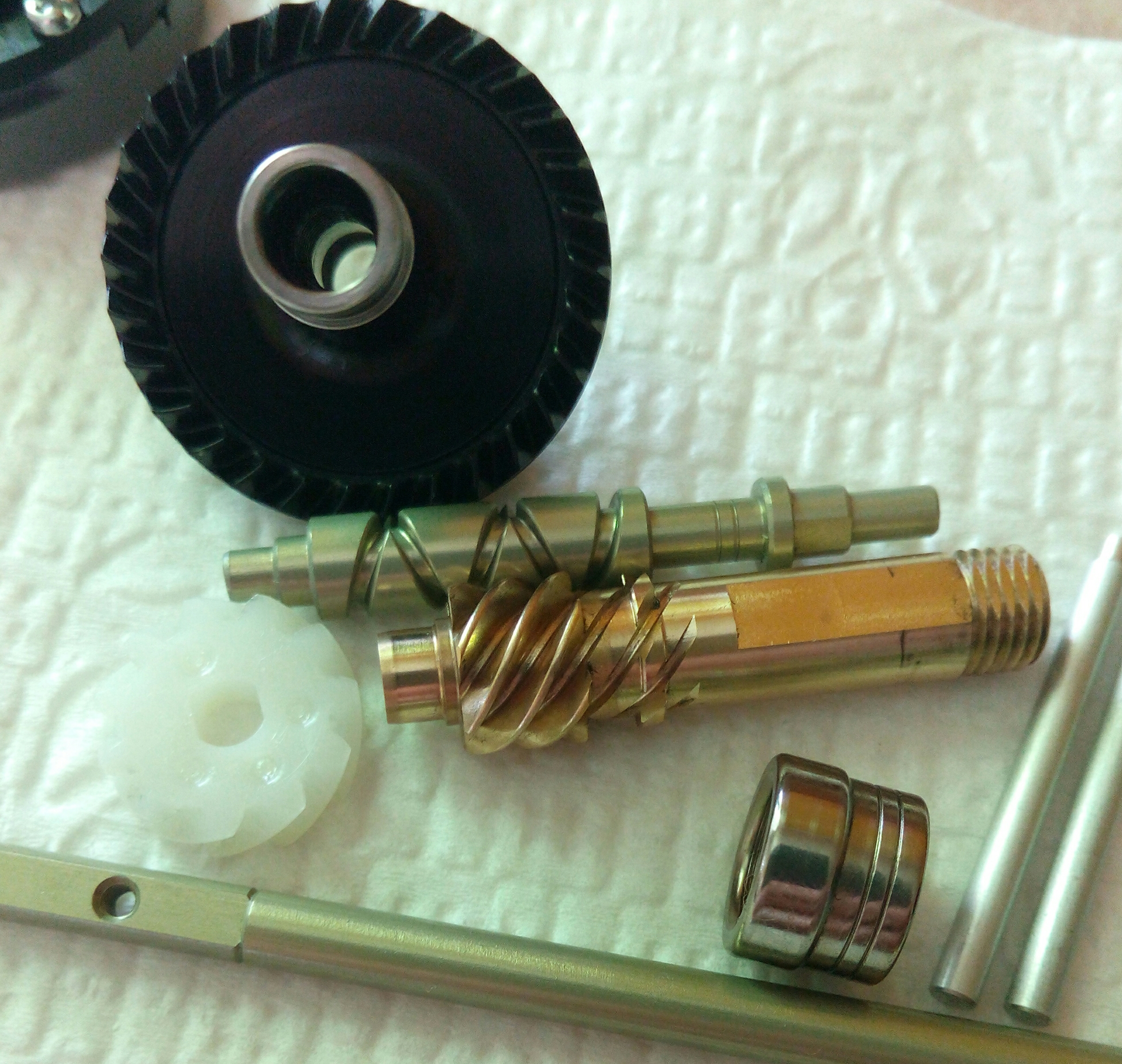 Катушка Shimano13 Complex CI4+ 2500S F4. Незначительный люфт ГП и люфт кноба. Всё остальное в идеале. Катушку раньше уже смазывали. Всего в ней 9 подшипников: на ГП-4, в кнобе-2, под шпулей-1, в самой шпуле-1 и в ролике л/у -1. Поставил ещё один подшипник вместо втулки на вал бесконечного винта. Итого 10+1. Интересная конструкция рукоятки, разбирается на мельчайшие детали. А вот фрикцион немного расстроил. Не смотря на резиновый уплотнитель на гайке шпули, фрикционные шайбы были грязные от попадания пыли