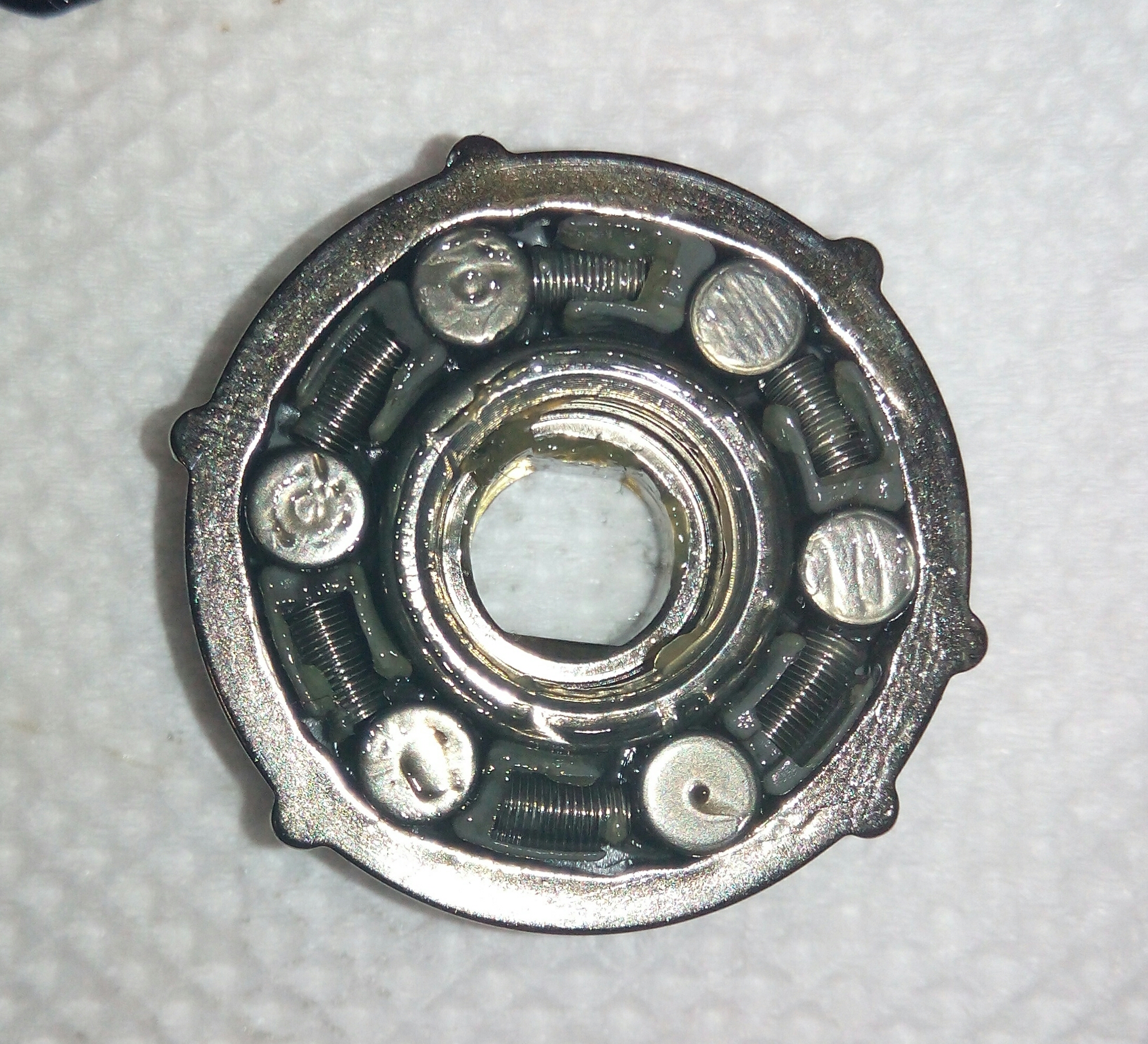 Эту неприятность исправил. Катушка очень даже достойная, все паразитки металлические, обгонная муфта одна из самых лучших, тормоз мгновенный за счёт пружин, которые распирают каждый ролик. На штоке уже появилась выработка, так как он весь был в мазуте с пылью и песком. После промывки и новой смазки, катушка начала дышать по новому.