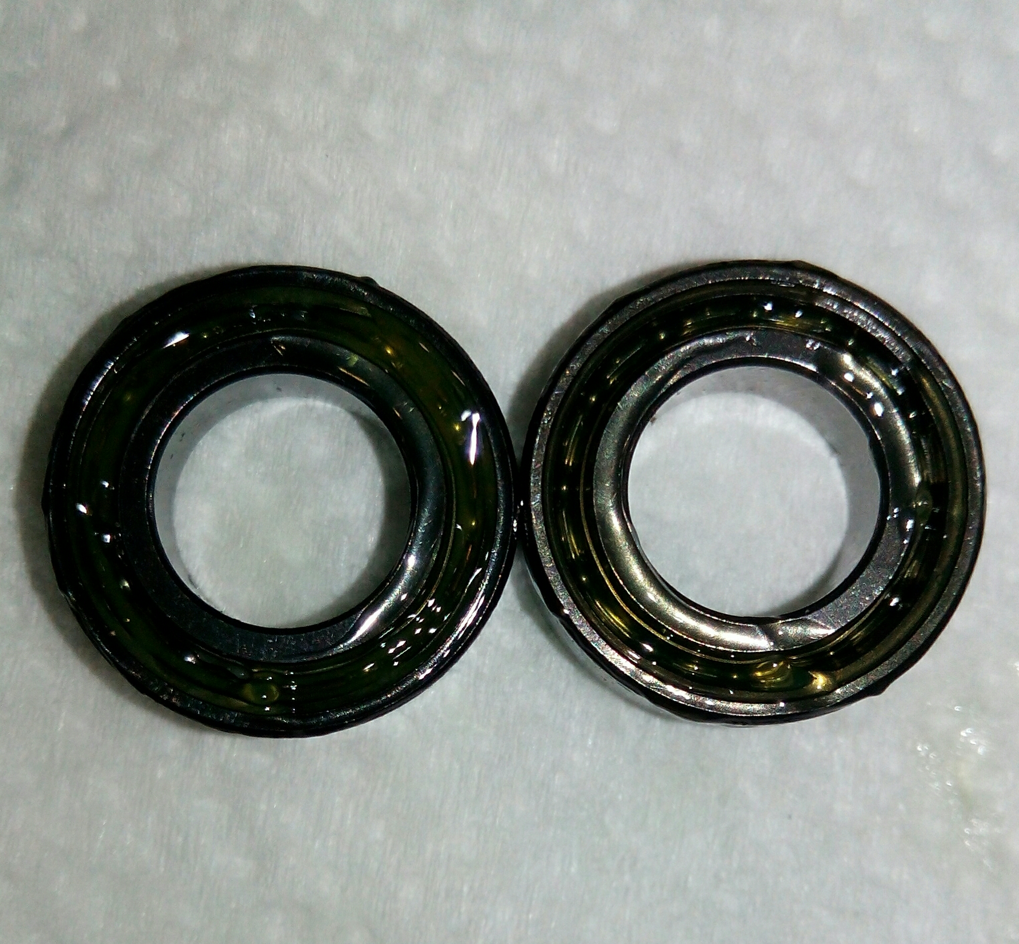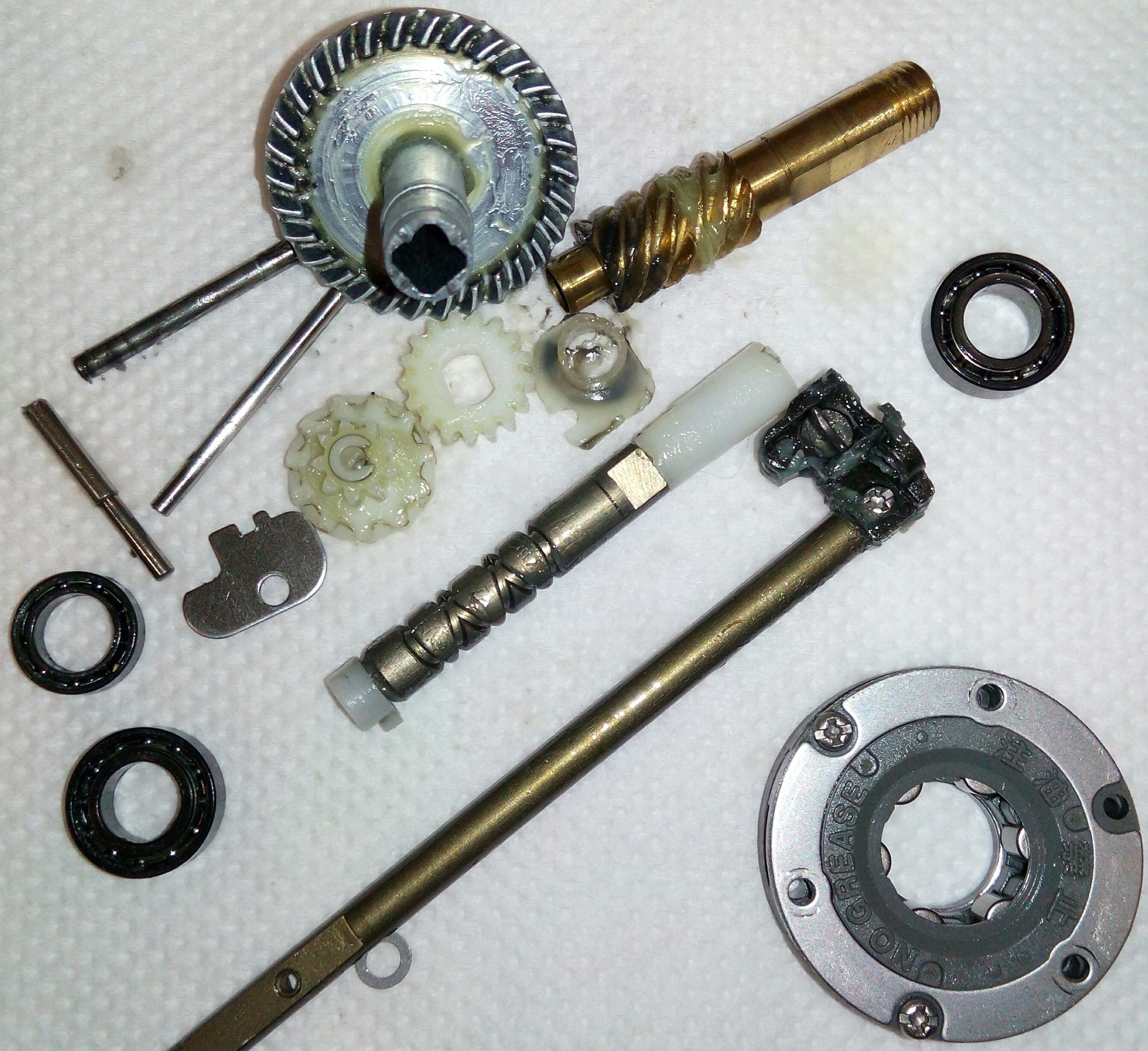 Катушка Shimano 02 TWIN POWER 2000. Данная модель 2002г поэтому мало чем напоминает современные Твины. Подшипников 6+1. Кноб не разборной, рукоятка хоть и складная, но в принципе не сильно люфтовая. Ход был немного шумноват с люфтом ГП. Шум в основном исходил от подшипников, так как они открытого типа и все сухие. Смазка шум убрала. Ролик л/у сухой, подшипник в нём тоже открытый и из-за попадания в него пыли практически пришёл в негодность. Износ ГП почти не заметен, разве что зубья на ведущей шестерне немного приобрели округлую форму. Катушка очень живучая. Одним словом - Твин.