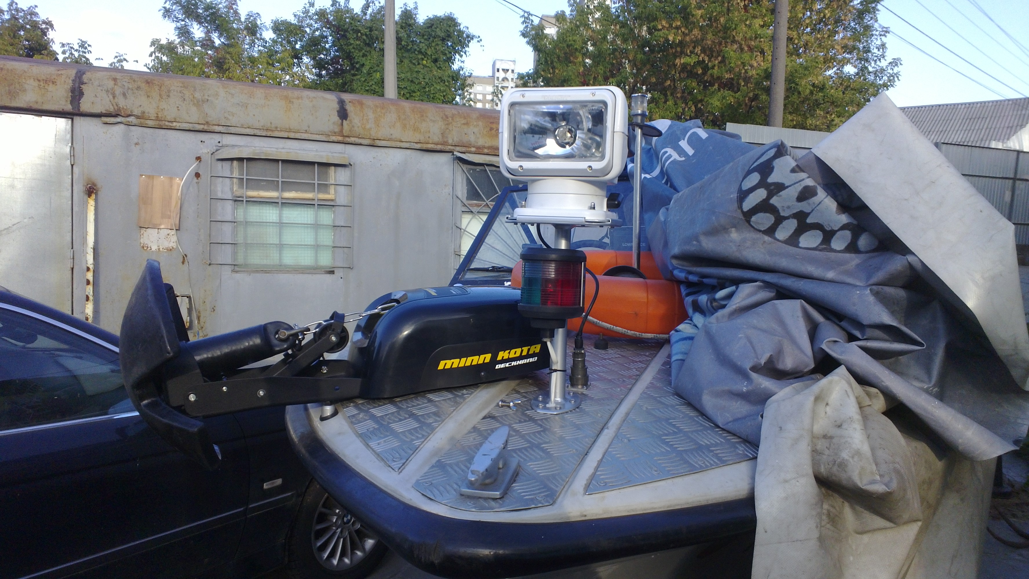 Лодка пластиковая 1998Г длина 4,50м, ширина 1,67м. Двигатель 2006 года, наработка 260 м/ч. Рулевое управление, командер, приборы, помпа,тент с яхтенной ткани, якорная лебёдка MINN KOTA 40, эхолот LOWRANCE Х-125,навигационные огни,фара GOLIGHT c управлением,бак 43л,весла, сидения съёмные(можно спать)радио, рация YAESU FT 2800M.Лодка на немецком оцинкованном лафете.Всё на киевской регистрации. Возможна продажа без прицепа.Цена - 6100$ Торг.