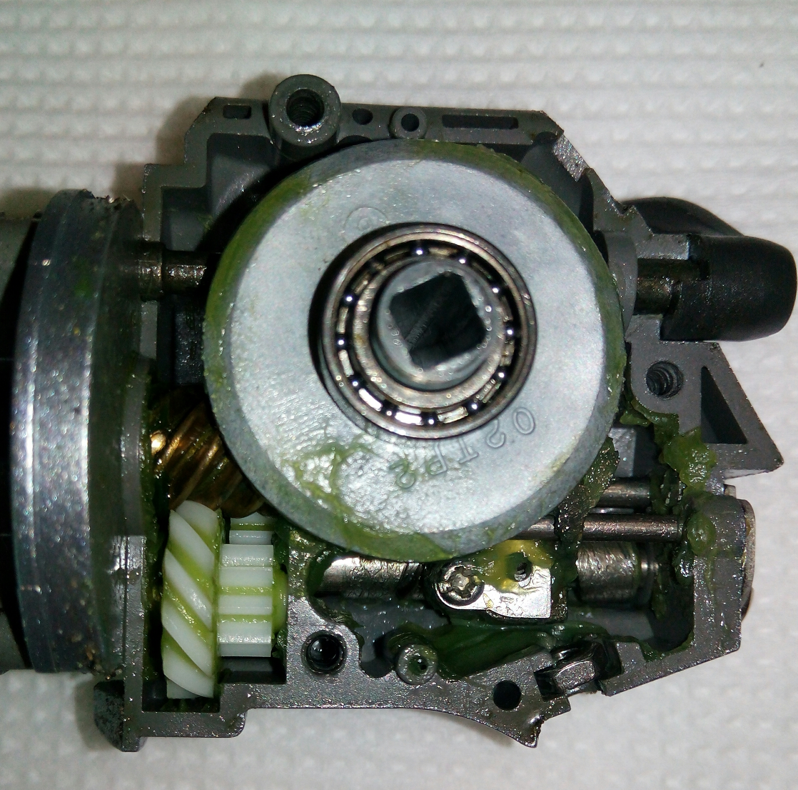 Катушка Shimano Technium 2500FA. Ход катушки был очень тугой, по инерции ротор делал максимум 1,5-2 оборота и резко останавливался. ГП была сильно зажата между собой. Внутри корпуса много лишней смазки, которая тоже притормаживала ход катушки. Так же дужка л/у как пружина сильно распирала в стороны коромысла ротора, соответственно было сопротивление при её отбрасывании, и в посадочных гнёздах пошла косая выработка (ранее писал об этом, пост 64). После того, как всё устранил и смазал новой смазкой, катушка стала крутиться на много легче. Хоть она и не обладает лёгким стартом, но тем не менее ход лёгкий, плавный и в относительно тихий.