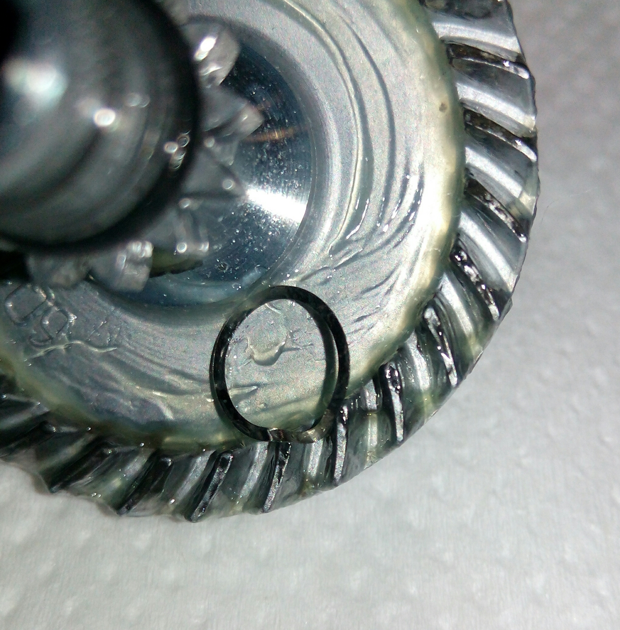 Катушка Daiwa Ninja 2500A. Ход плавный, лёгкий и тихий. Присутствовал люфт на ГП. Внутри катушки оказался сюрприз в виде заблудившийся шайбы, которая впечаталась в зубья ведущей шестерни. Как не странно, но она никак не ощущалась и не влияла на работу катушки. Фрикцион был абсолютно сухой, несколько хороших трофеев его бы спалили полностью. В ролик л/у установил подшипник.