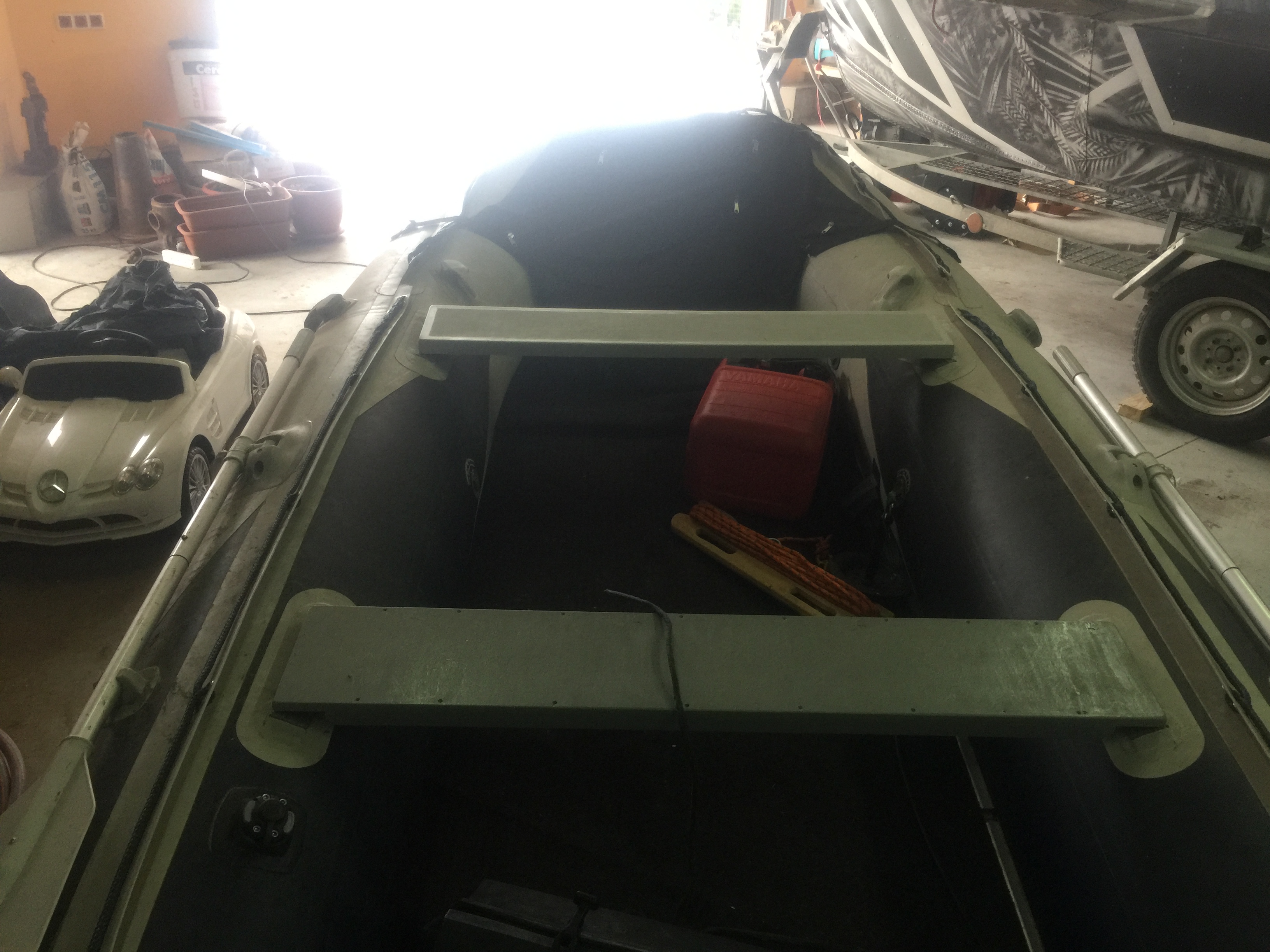 Хранилась и перевозилась на лафете. Из допоборудования вторая лавка, рундук на носу, закладная под спиннингодержатель и сам спиннингодержатель. красный коврик в салоне)