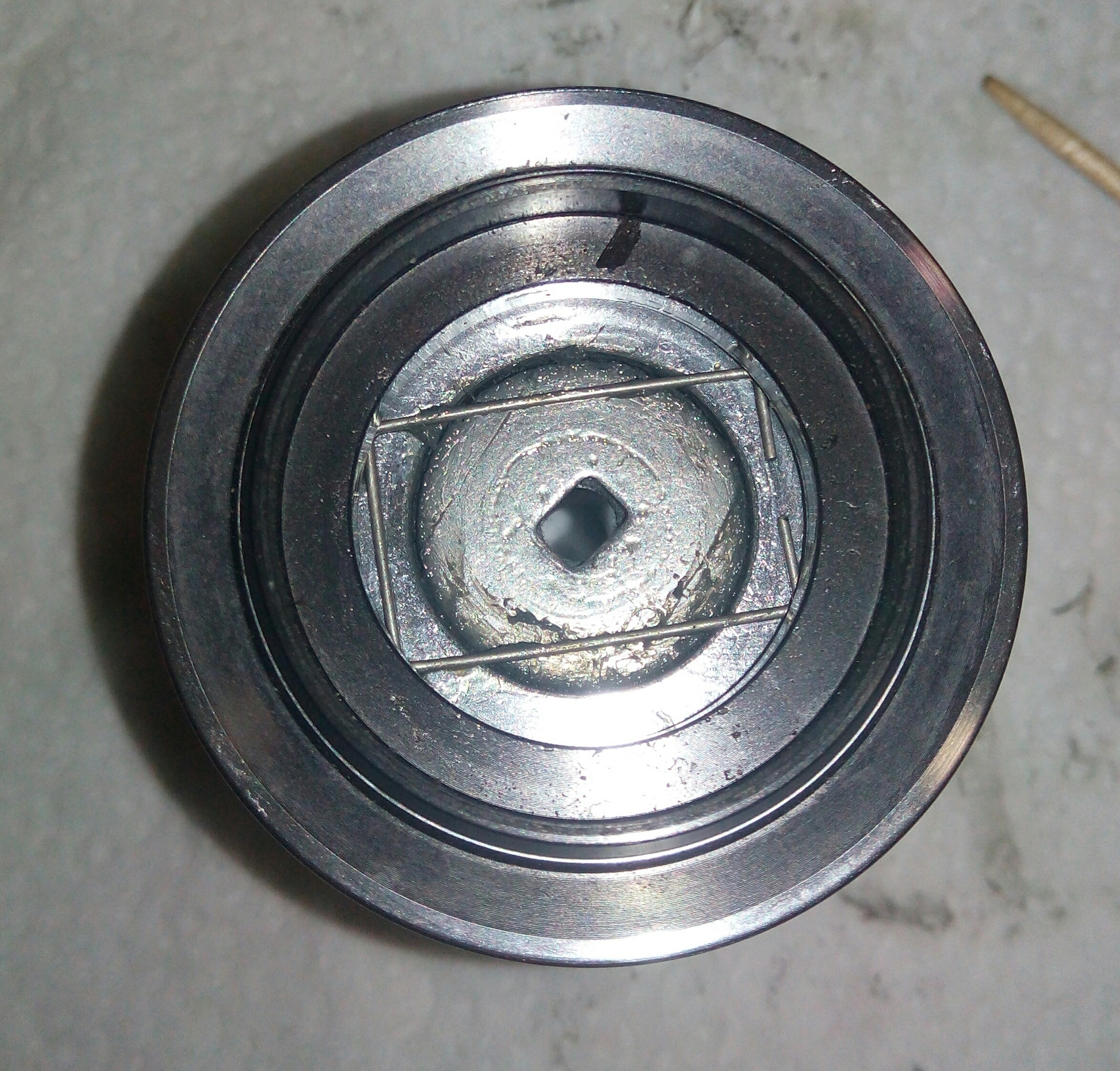 Ход катушки плавный и тихий, но внутри она была почему-то грязная. Щелчки в крайних положениях шпули обусловлены тем, что в пазу каретки появилась незначительная выработка, это довольно частое явление и на общий рабочий механизм не влияет, кроме как посторонних щелчков. На ГП выработка тоже незначительная, в виде равномерной косой притирки зубьев. Что случилось со смазкой после ТО я не пойму. В суставе рукоятки присутствовал приличный люфт, который можно было без особого труда убрать, так как шток вышел как по маслу. Ещё один интересный нюанс в виде лопнувшей пружины в отбрасывателе дужки. По идее в процессе ТО такие бросающиеся в глаза неисправности должны были устраниться.