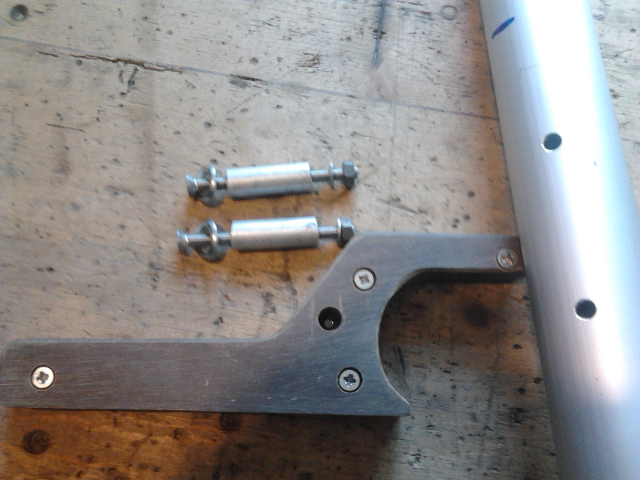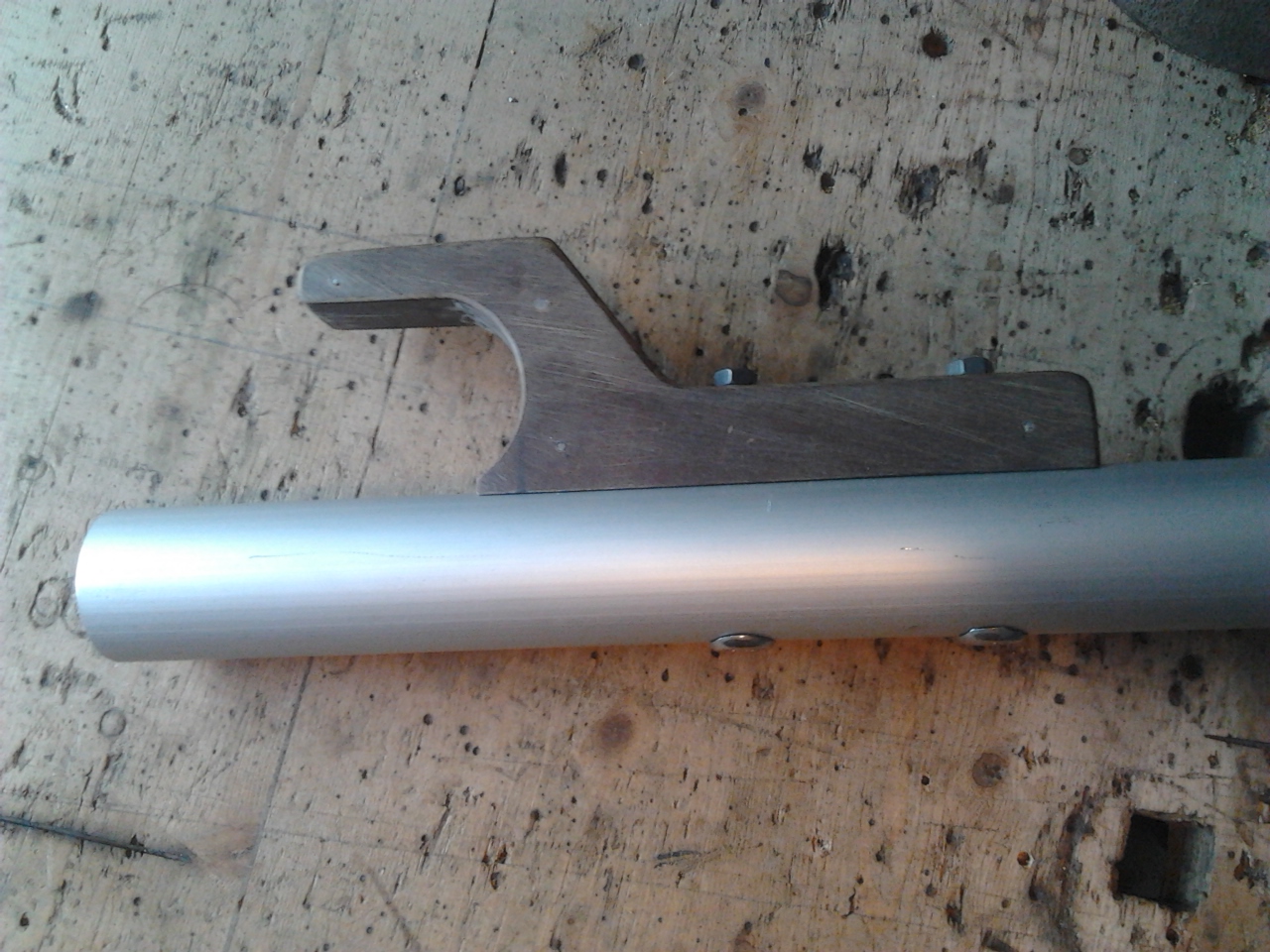 Прикрепил ус к гику. Это не очень просто. По гику осталось сделать три обушка (думал купить, так они по 80 грн. шт. это того не стоит - пластинка с двумя отверстиями и проволочная петелька) и два нока по краям с отверстиями, думаю выточить из пластика. Раздумываю как лучше сделать гикашкот, где крепить и как провести. Может кто что подскажет?