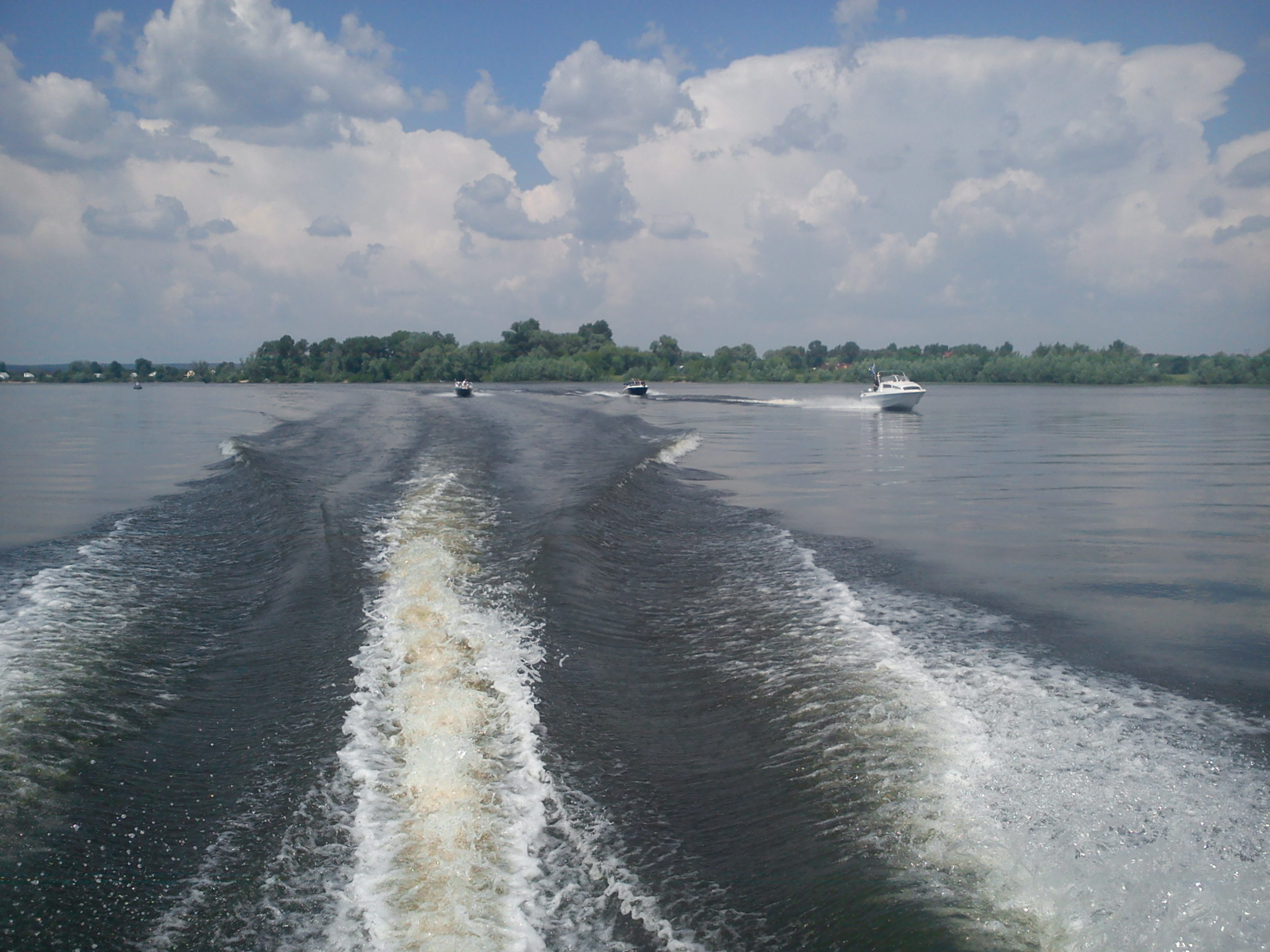 Догоняем первую партию, причаливаем, завтракаем, по писят и дальше в путь! Часам к двум мы на месте! Не доходя пары километров до лагеря у Чехардона глохнет мотор, Бондык собирается к нему на помощь, но в этот момент начинается гроза! Мы звоним Чехардону, говорим, что-бы причаливал к берегу, и после грозы мы за ним вернёмся! Пока идёт гроза, все сидят по палаткам и лодкам! После грозы Бондык уходит за Чехардоном, у Чехардона пропало питание на мотор, звонок Гене Б