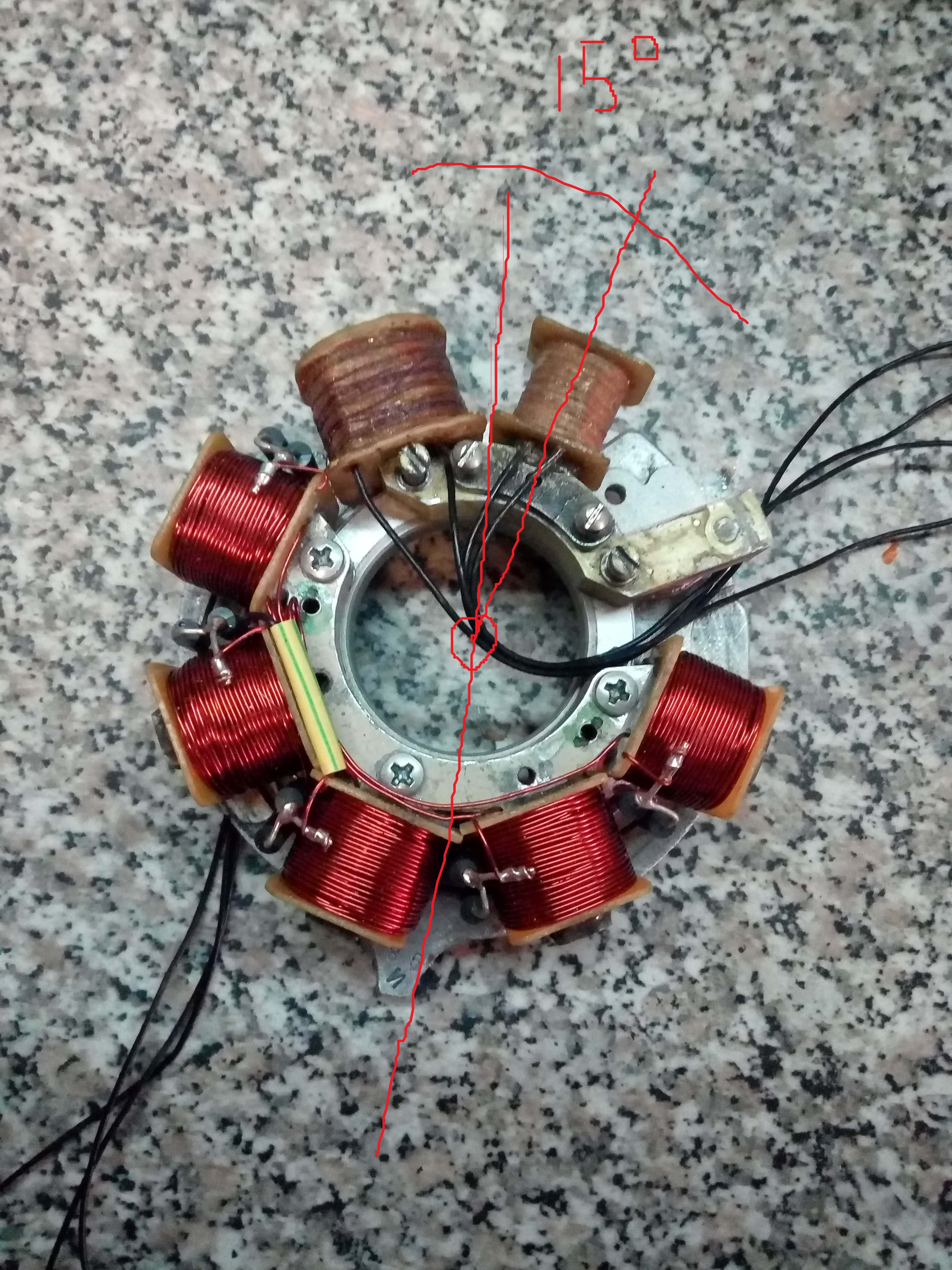 Да, повернуто по ходу врашения на 15градусов. Запуск легкий без отрывания рук и на низких оборотах идет ровно, вибрация минимальная.