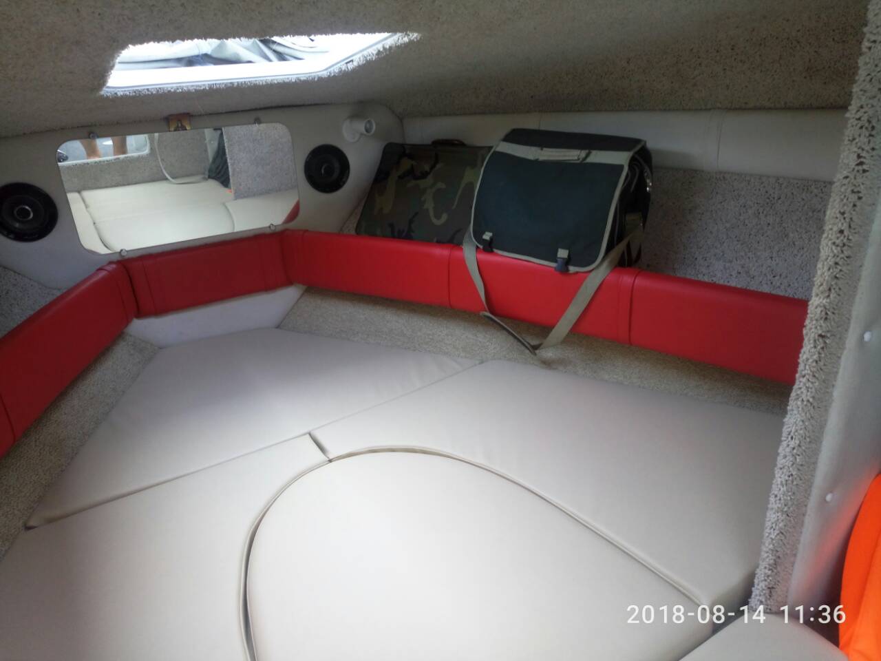 Перешитий салон морським вінілом, Відновленно загубленні частини салону, демонтовано рукомийник і інтегровано на його місце додаткове сидіння атвуд, зроблені додатково матраци з морського вінілу, погнуті дуги і відшитий тент з яхтєнної тканини.