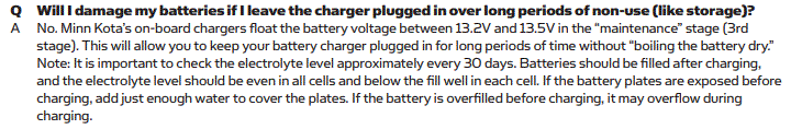 Сам впринципе склоняюсь к тому, что люди, которые придумали эту умную зарядную станцию не дураки и пытаются по максимому облегчить жизни ленивым людям как Я (не надо снимать батареи на зиму и тащить их куда-то.)