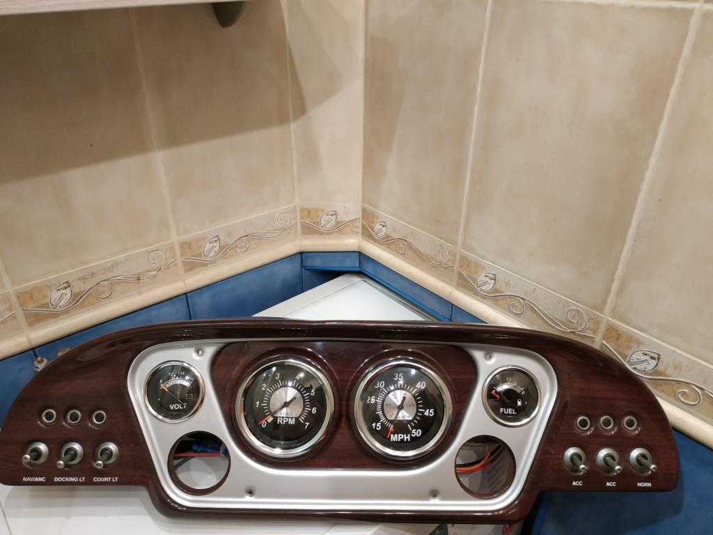 Приборная панель в лодку -катер:Tахометр ,спидометр, вольтметр, указатель уровня топлива, 6 перекльчателей с восстанавливаемыми предохранителями.Есть возможность доустановить еще 2 прибора или заглушить. 3400 грн.
