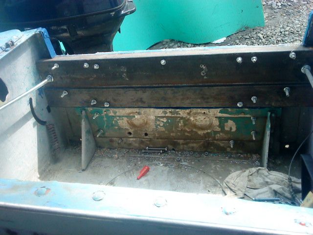 Уважаемые форумчане, вот нашел на одном из форумов интересный вариант усиления транца и довольно таки прочный (ИМХО) , думаю автор фото не сильно расстроится если я выложу эти фото здесь, мне интересно выслушать Ваше мнение по поводу такого усиления, прошу не обращать внимания на материалы исполнения так как автор идеи спешил и делал из подручных материалов, я думаю делать из алюминиевого профиля (наращивать транец), но возможно есть смысл нарастить фанерой с учетом замены родной транцевой доски и снаружи обшить это дело листами!?