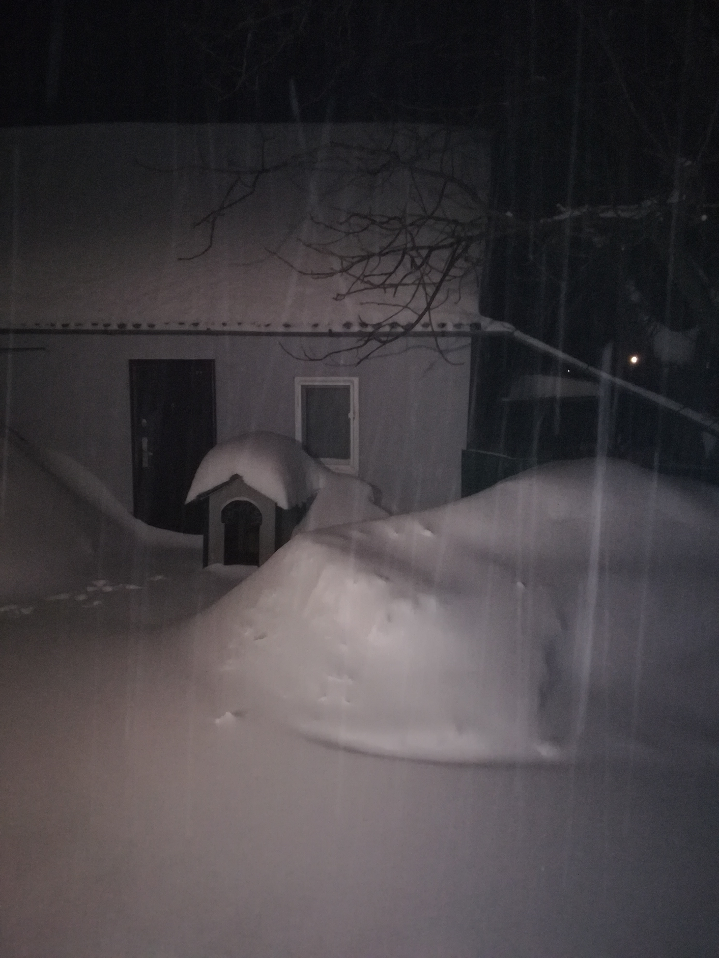 У нас жопа тут началась. Такого снегопада не помню. Видимость метров 5 .