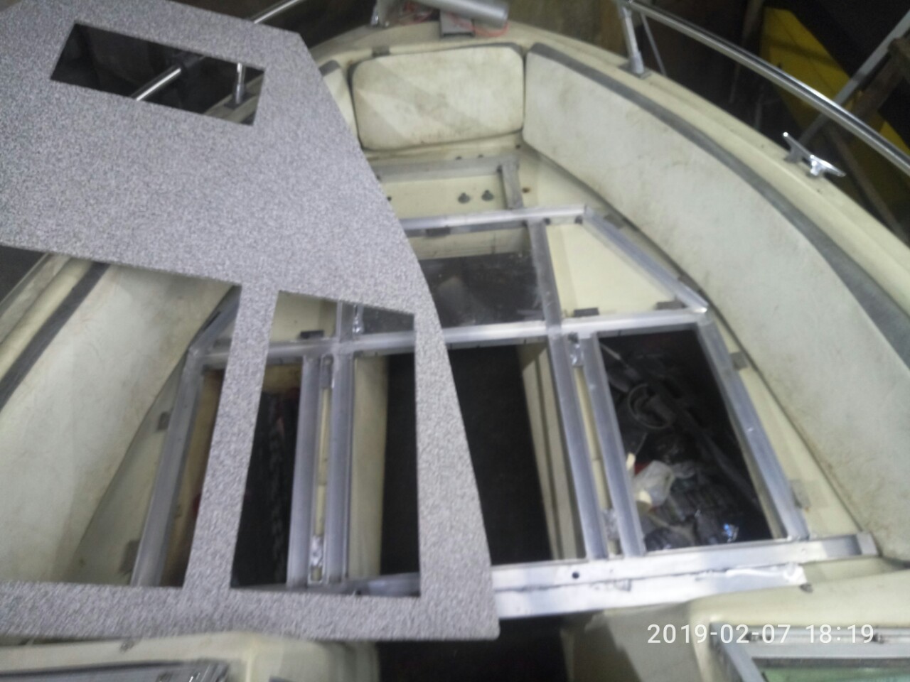 Човен Styngrey із стаціонаром, трошки втомлений , али ми його привели до тями, з Власником човна обговорили і домовилися про перераховані мною роботи. Підлогу у кокпіті ми не кріпили і не ставили сидіння , так як човен завтра вирушає на доробку силового набору підлоги (стрінгера і шпангоути, ми такого не робимо.
