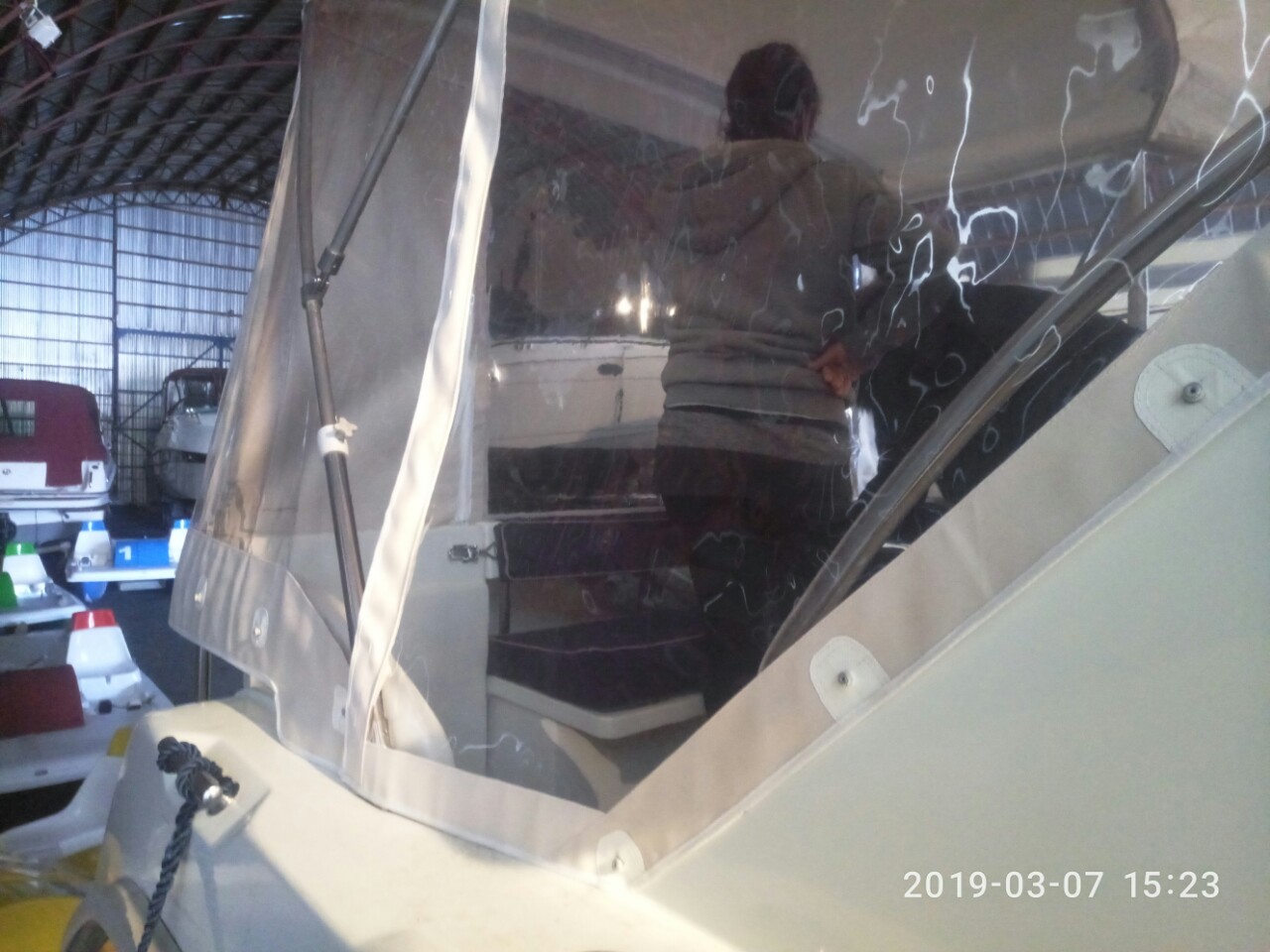 Відшиті штори із спец, тканини по усьому салону човна.