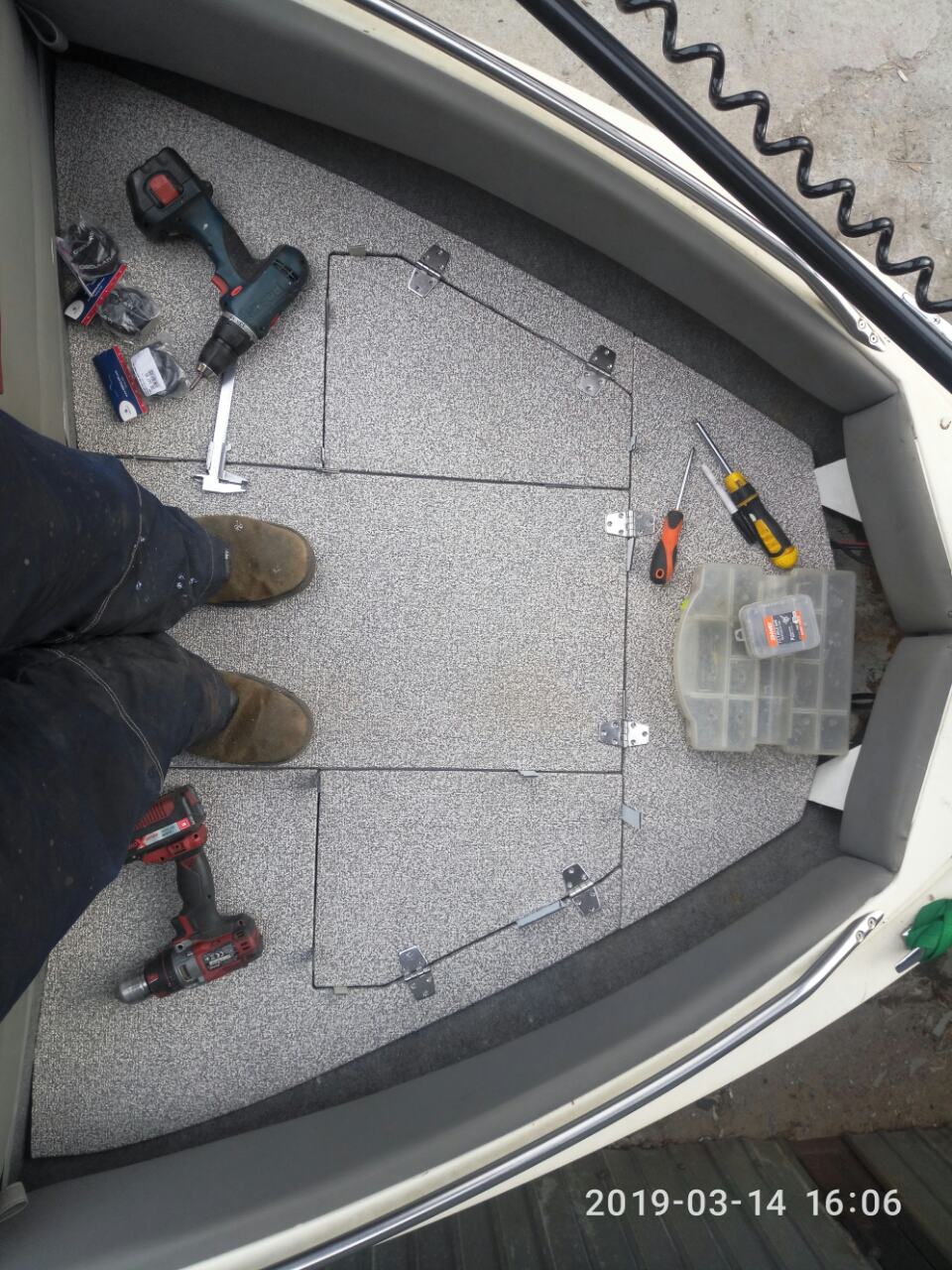 Клієнт побажав зробити Носовий подіум, щоб скрити недоліки і добавити функціональності. Усе зашили вінілом Nautalex, петлі нєржа і аскулат'євські ручки рундуків.