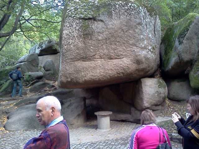 Мы пошли за экскурсоводом – коренастым дедушкой с чистым украинским диалектом речи жителя Полтавщины. Позже выяснилось, что он научный работник с учёной степенью. Заметная часть наших туристов осела на лавочках возле пруда с чёрными лебедями и достала пиво. Как они ошиблись… Забегу наперёд, что на обратном пути началась гроза, потемнело и водитель отказывался останавливать автобус, дабы страждущие могли похудеть на 2 литра. Под сиденьем было обнаружено ведро и после возникновения угрозы переполнения оного, водитель всё же догадался остановиться