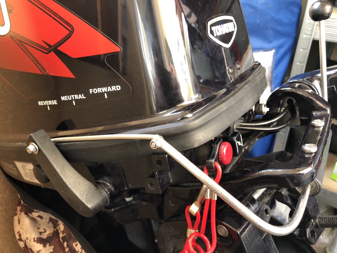 Есть много интересных решений(и все , точнее большинство из этих решений делают наши земляки). Вот чисто случайно увидел такое решение(теперь передачи можно вкл не с боку мотора а почти возле румпеля. Причём в живую всё выглядит довольно таки симпатично.