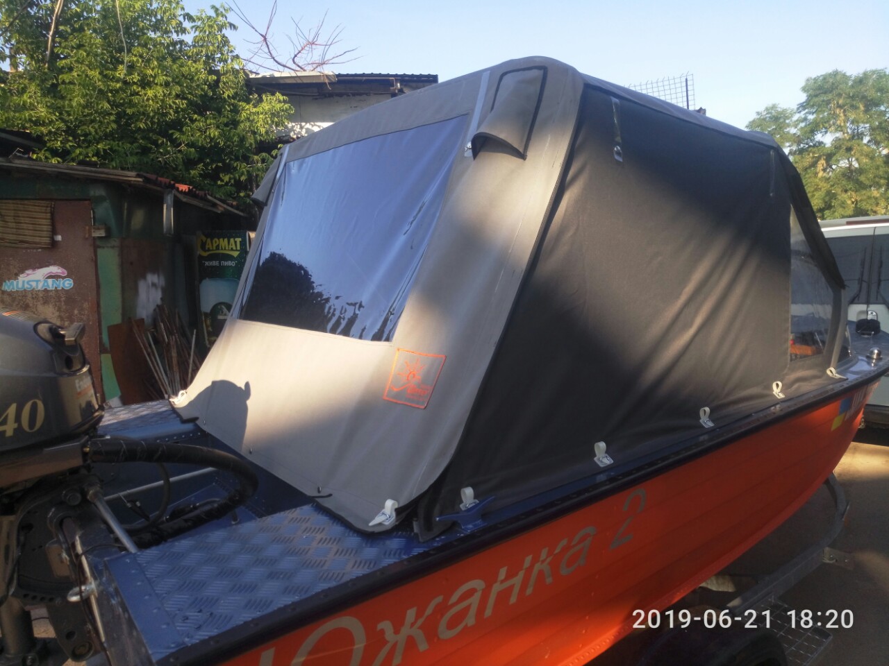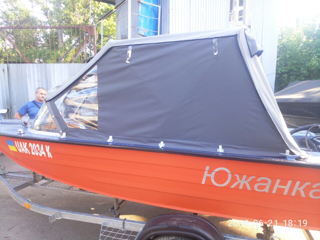 Дах, носова частина і кормова з яхтеної тканини , а бокові частини з навігатора. , як на фото.