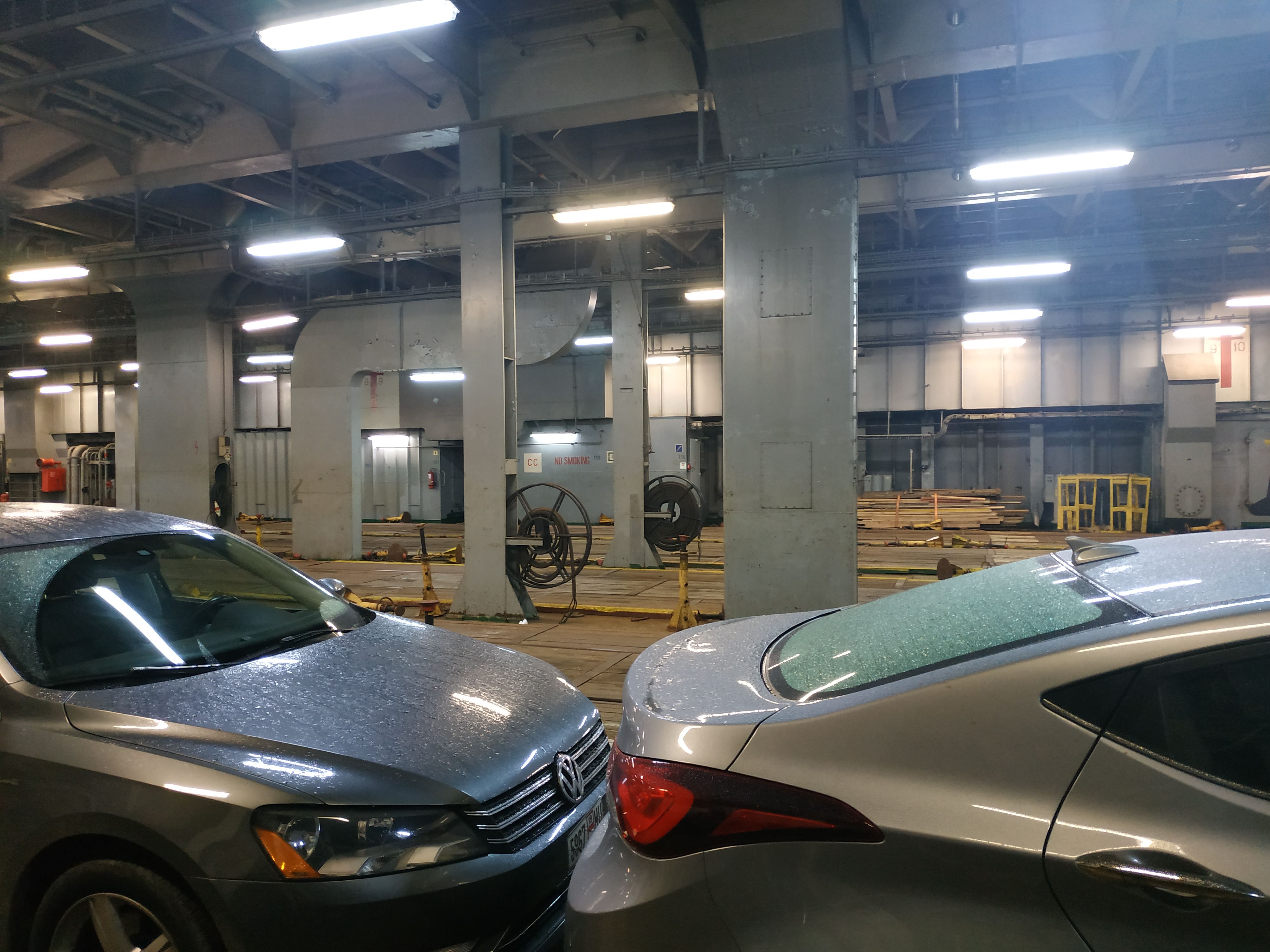 Это и опоздание парома как на загрузку, так и в порт прибытия. Долгая погрузка, долгая выгрузка. Практически полное отсутствие какого-то расписания - мы ушли и пришли с опозданием в сутки, хотя непогоды не было. Достаточно ограниченное пространство для пассажиров и отсутствие развлечений не делает 40 часовой переход легким. Безболезненно и незаметно его можно пережить, наверное, только в состоянии алкогольной комы