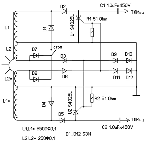 Попалась така схема. Чи працюватиме ? Питання виникло через присутність діодів Д9...д12.