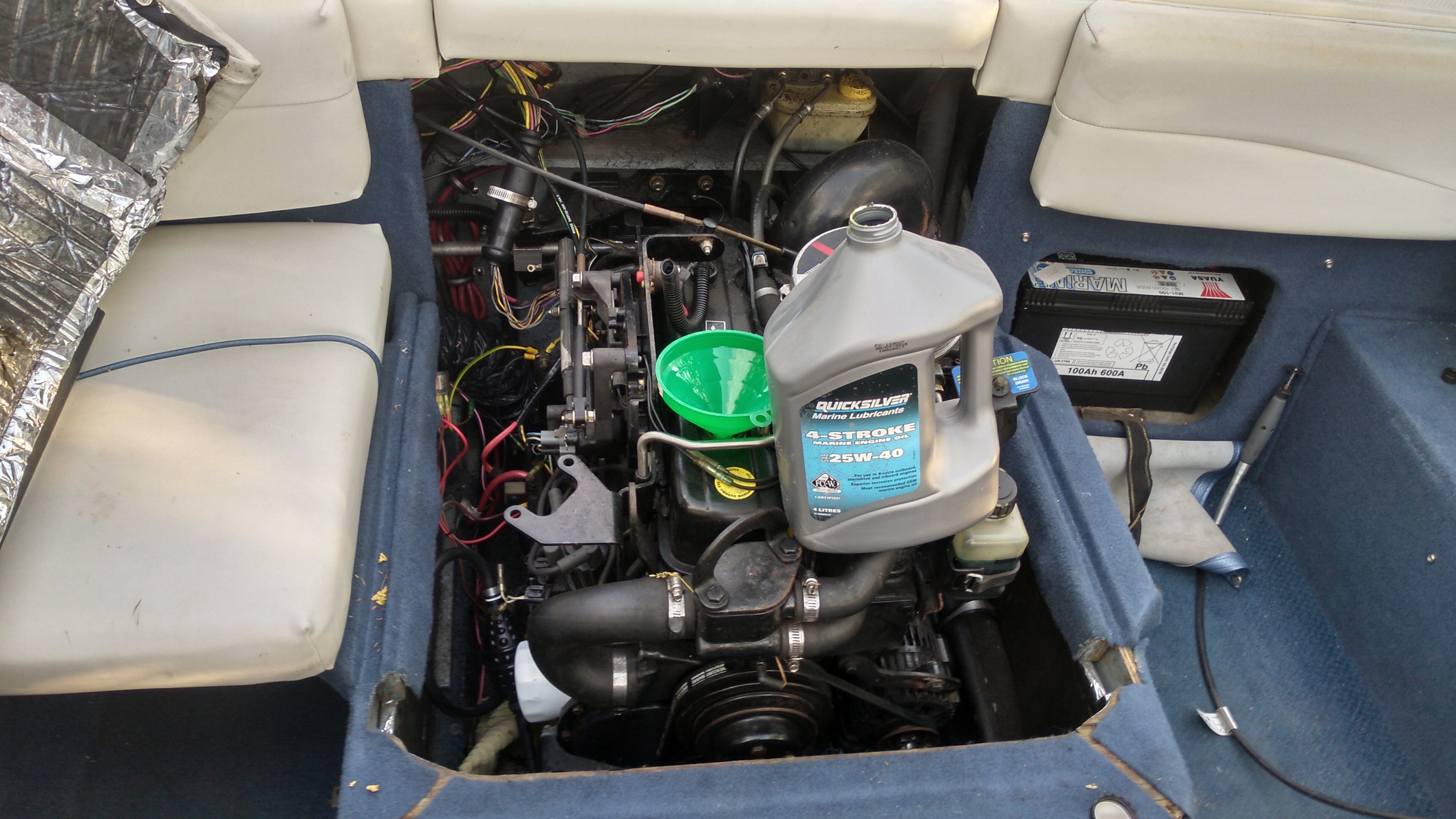Замена масла в стационарном меркрузере оказалась даже легче замены масла в газонокосилке, пока что это самое удобное решение смены моторного масла, которое я когда-либо встречал. Даже в 4т сузуке 2.5 его менять "сложнее".