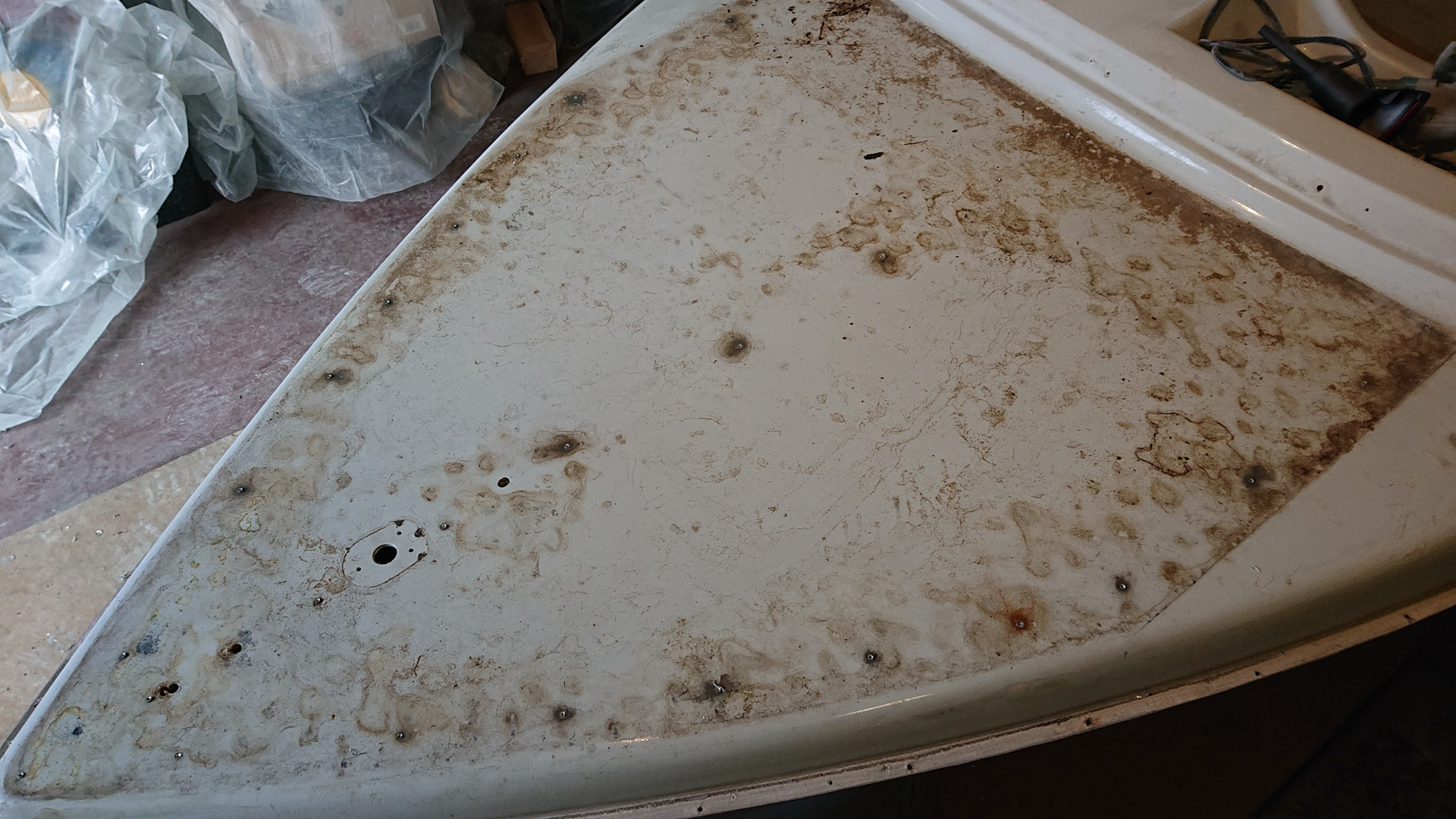 С носа снял дюральку, оно то хорошо ходить по ребристой дюральке, но уж какось брутально как для белой лодки, заменю на искуствнный тик. Под дюралькой жахиття