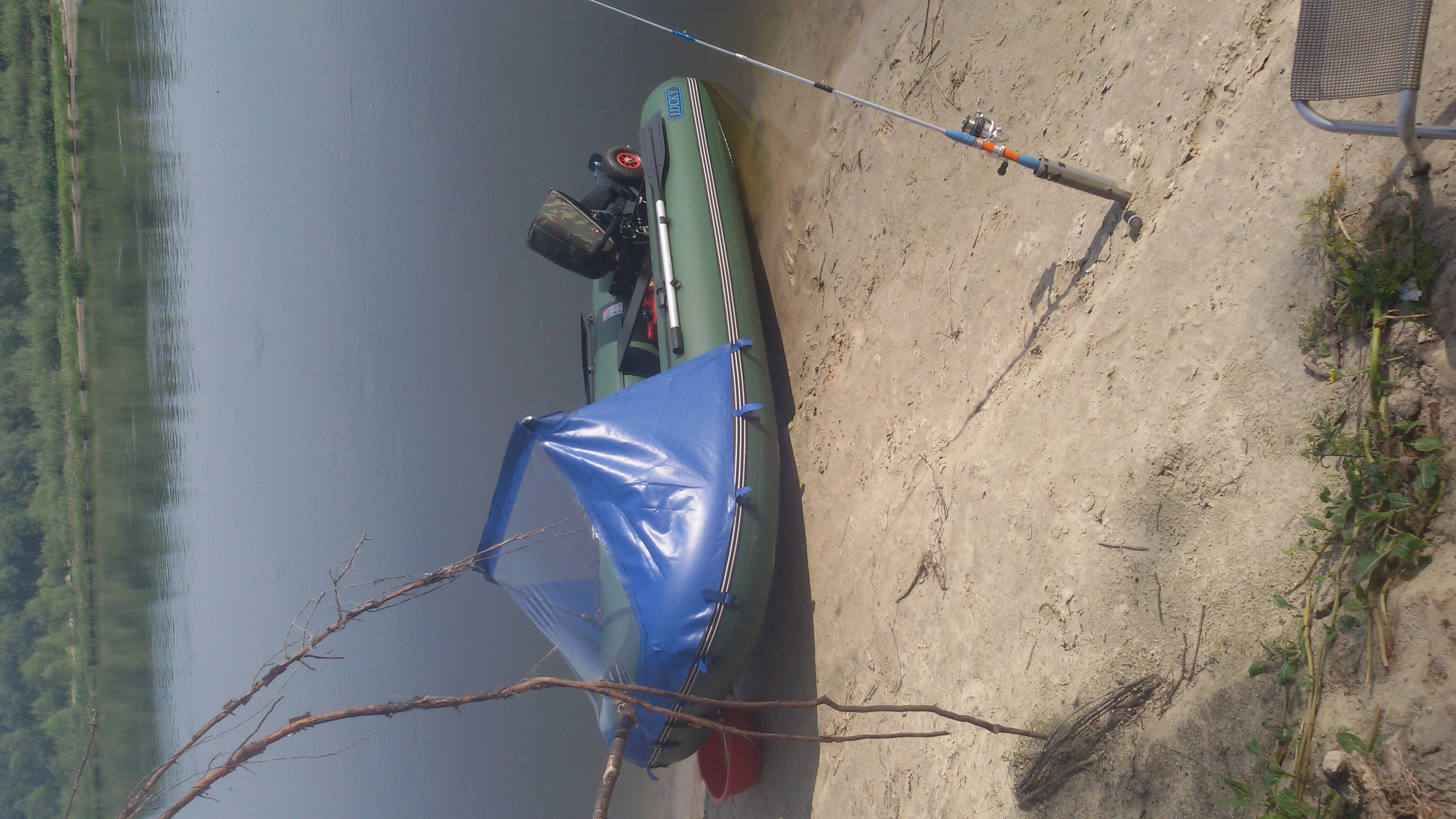 Лодка покупалась новой три года назад и подводилась под себя. Усилен и подогнан транец под под ногу 440 мм, проклеена доп. защита по днищу (120 мм), установлены транцевые колёса автомат от "Технопарус", поворотное кресло (новое), самолично сшиты два тента из ПВХ - носовой и транспортировочный.