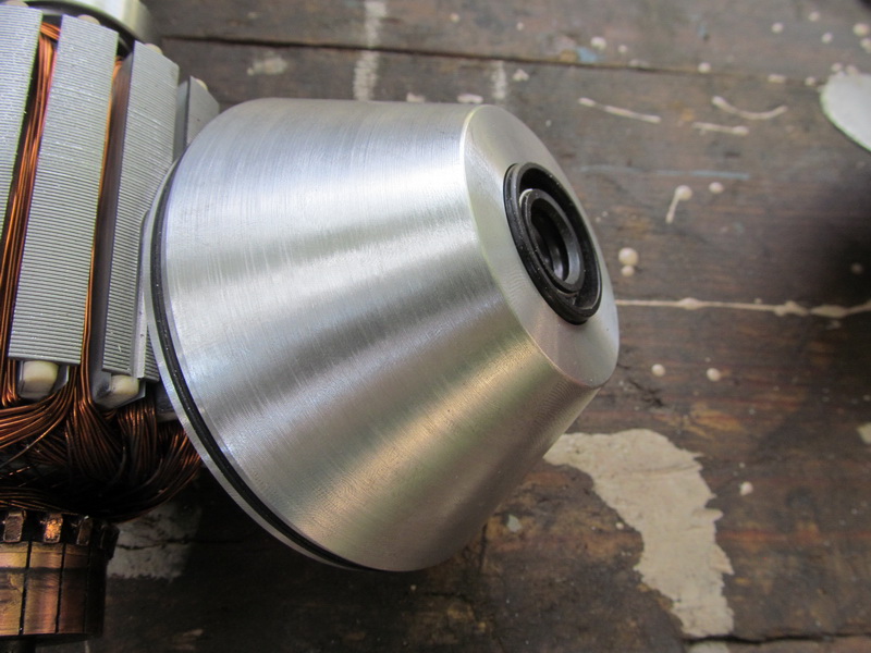 Передняя крышка. Из-за того что собираться мотор будет на двух шпильках уплотняемый диаметр был увеличен с 95мм до 98мм. Придется либо малехо расточить родной оцинкованный корпус, или ждать пока не попадется толстостенная алюминиевая труба.