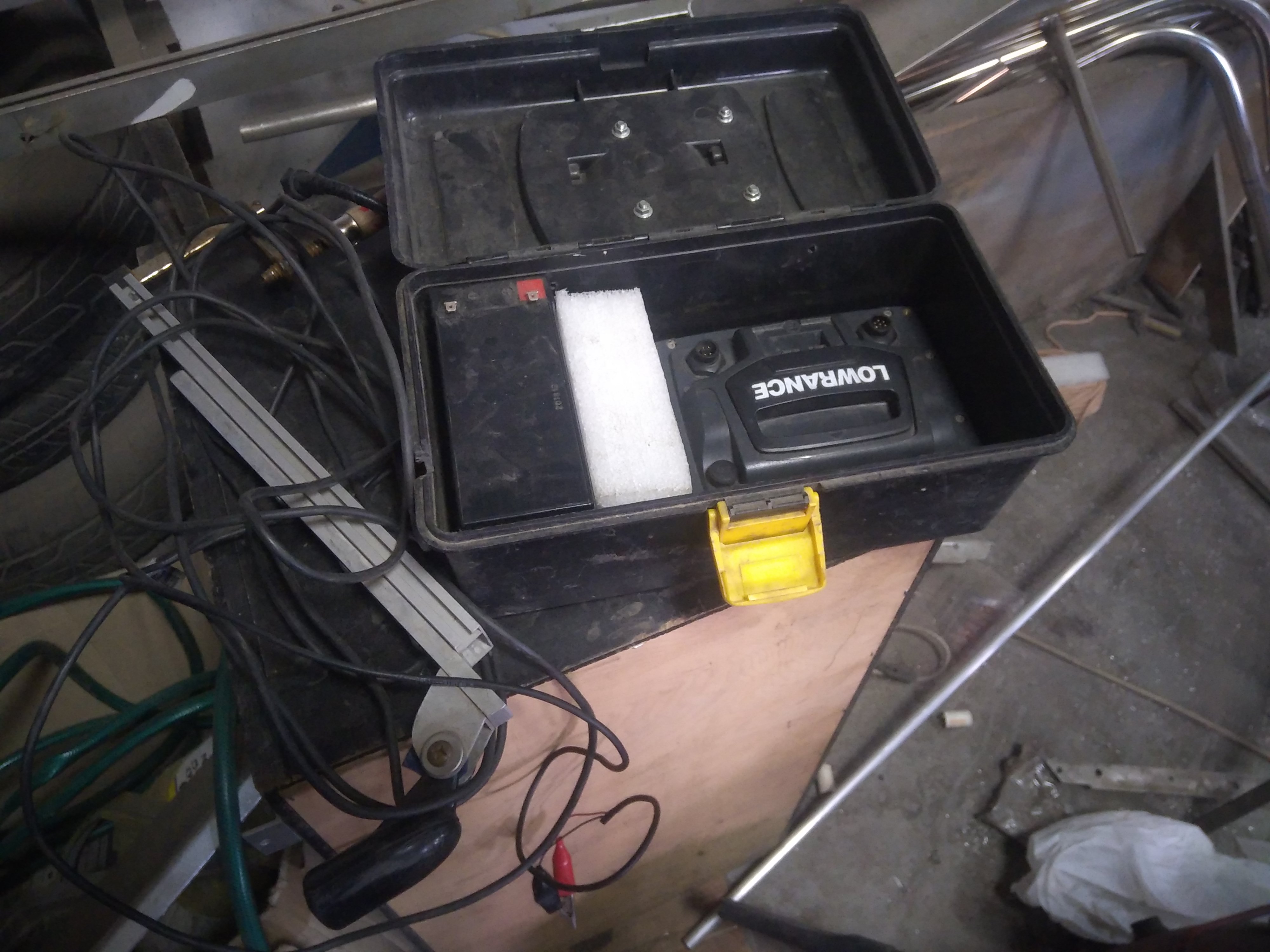 В комплекте эхолот, датчик с креплением на транец, акум 9 а/ч, ящик.