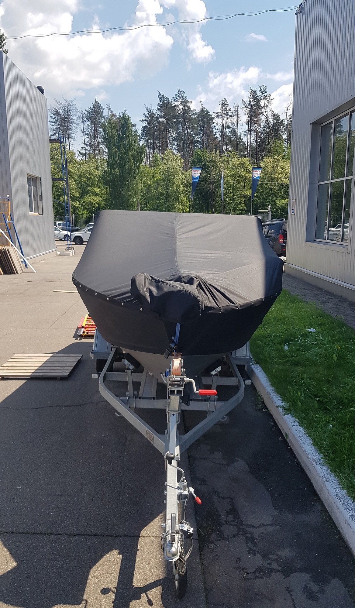 Разом з тентом, переробив ворота Сербастер. Бокові фанерні вловлювачі після декількох невдалих швартувань перетворились в мотлох, тому їх нафіг зняли і зварили надійнішу, роликову конструкцію (на фото видно). На відкритті випробував, все супер працює, я задоволений!