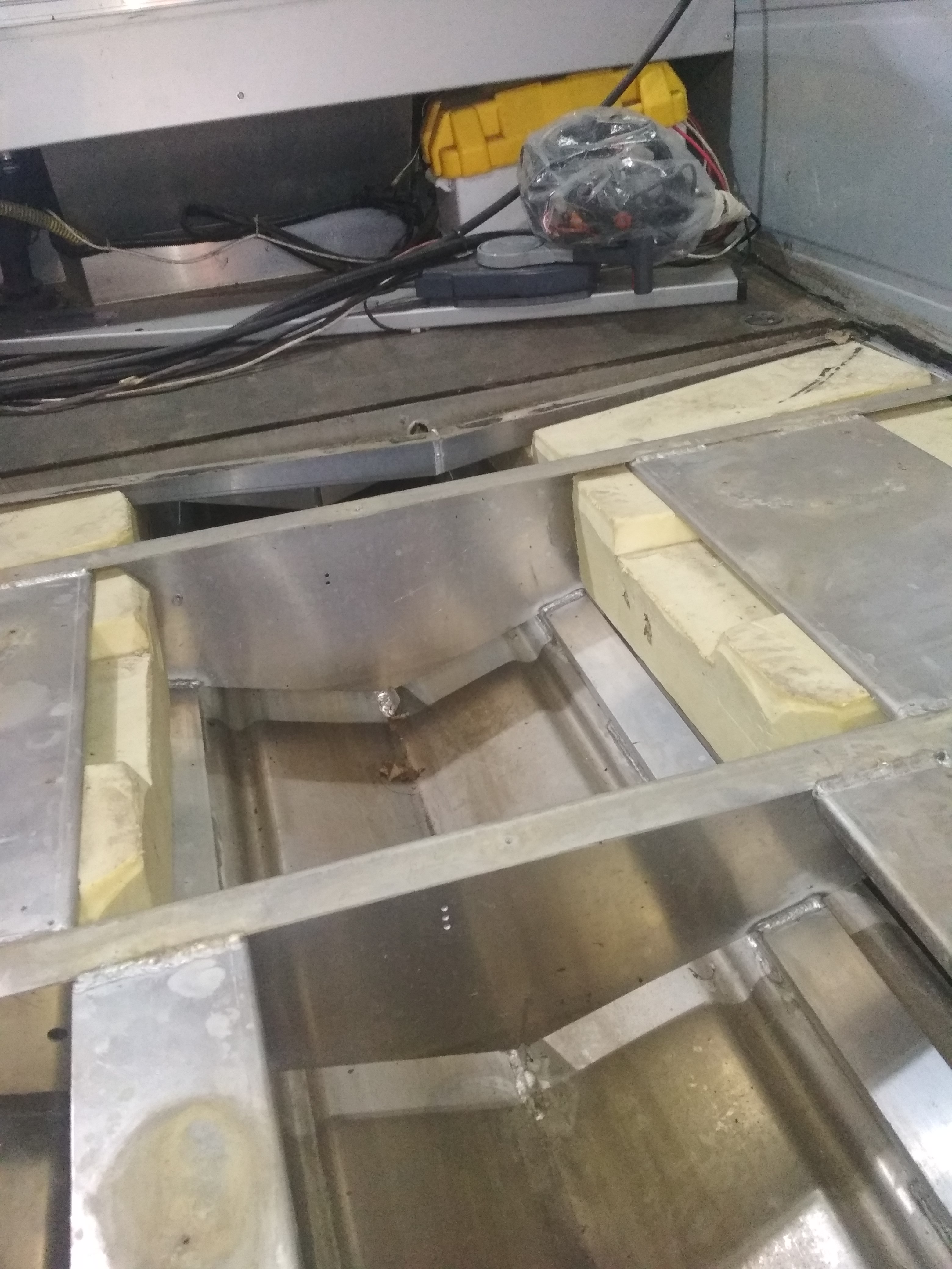 Читал что кто то вырезал по центру в полу просто люк и сделал холодильник, но туда можно поставить и аккумуляторы но как к ним провести провода и нет ли там по центру блоков плавучести?