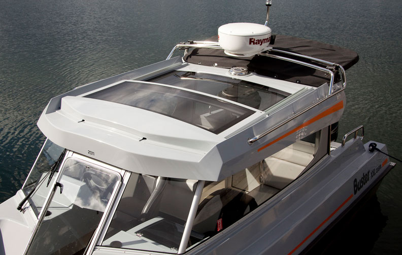 Второе поколение всепогодных лодок Buster пополнилось большими лодками. Полностью обновленный катер с центральной кабиной Buster XXL Cabin, является преемником XXL моделей AWC. Кабина достаточно высока для того, чтобы стоять, и у нее есть стеклянная крыша с большим окном. Ширина кабины составляет практически 2 метра. Двери кабины выполнены для максимального удобства перемещения пассажиров – закрывающаяся стеклянная передняя и сдвигающаяся задняя двери.