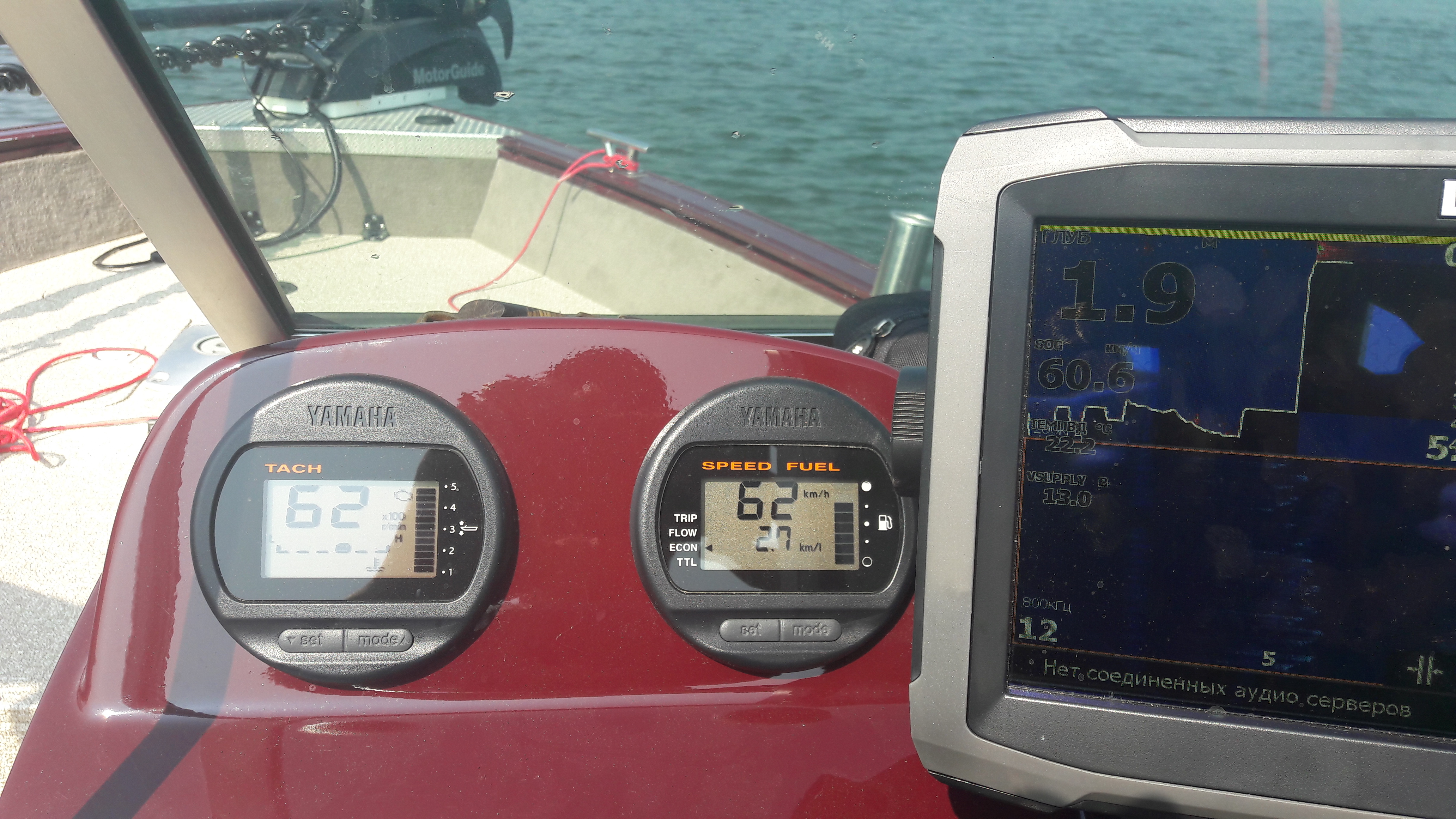 С понедельника буду на воде, тогда и напишу точно. Но с тремя в лодке плюс куча вещей и электромотором + стронжер+ АКБ 105 Ач в носу, то скорость не ниже 53 км/ч.
