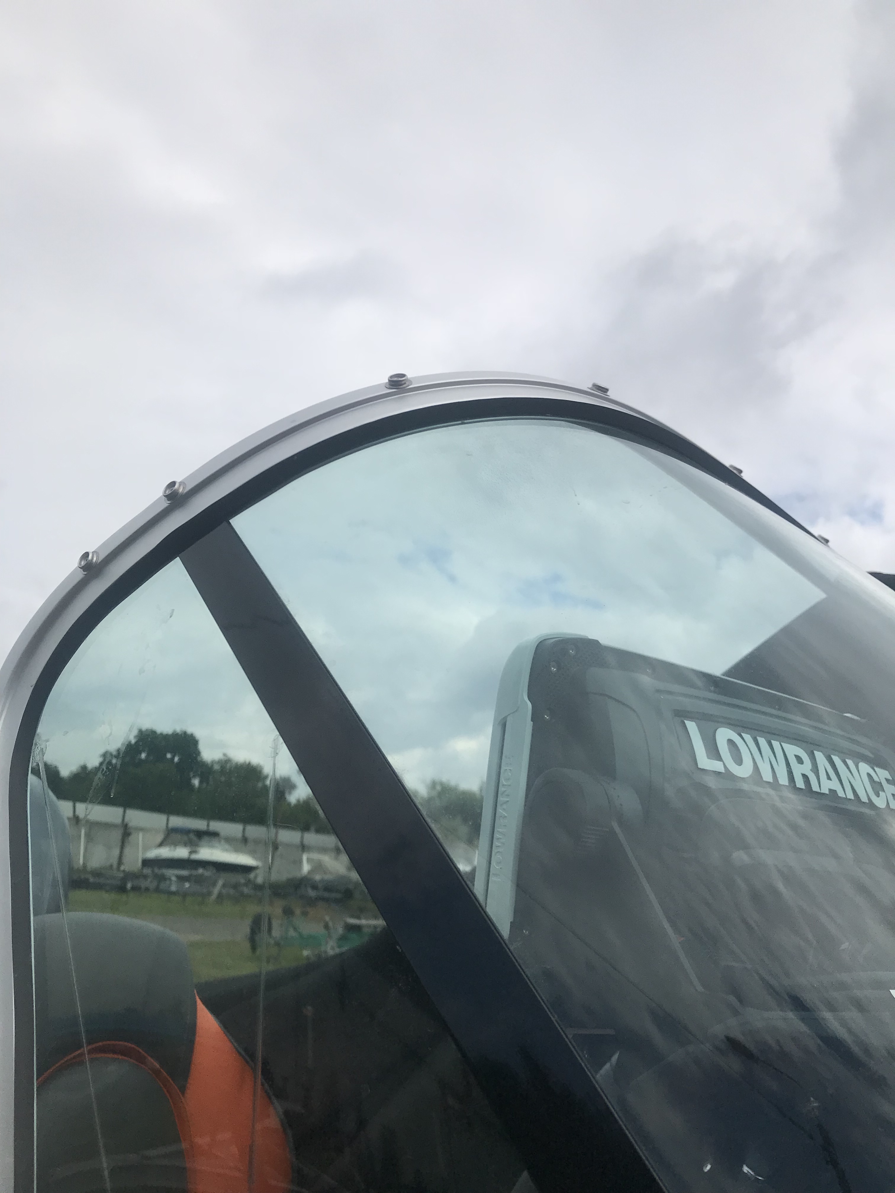 Вопрос к производителю, может что-то не верно делаю... Исходные: лодка храниться на воде под транспортировочным тентом, на днях обнаружил что лобовое стекло в правой верхней части на изгибе покрылось муаром, простыми словами - сначала думал, что запотело, но присмотревшись понимаю, что именно пластик стекла стал "белесым", помутнел ... Рядом стоит такой же Финвал друга, присмотрелся - у него тот же эффект, правда немного меньше, но он чаще на воде, т.е. расчехляет лодку чаще... Вопрос: понимаю, что это не нормально, но возможно я прослушал рекомендации и нельзя стоять под солнцем с транспортировочным тентом или может есть другие объяснимые причины, кроме уж очень быстрого старения пластика под действием солнца/температуры, что само собой напрашивается... Лодка этого года. Фото постарался сделать, но по нему особо не видно, разве что более понятно в каком месте.