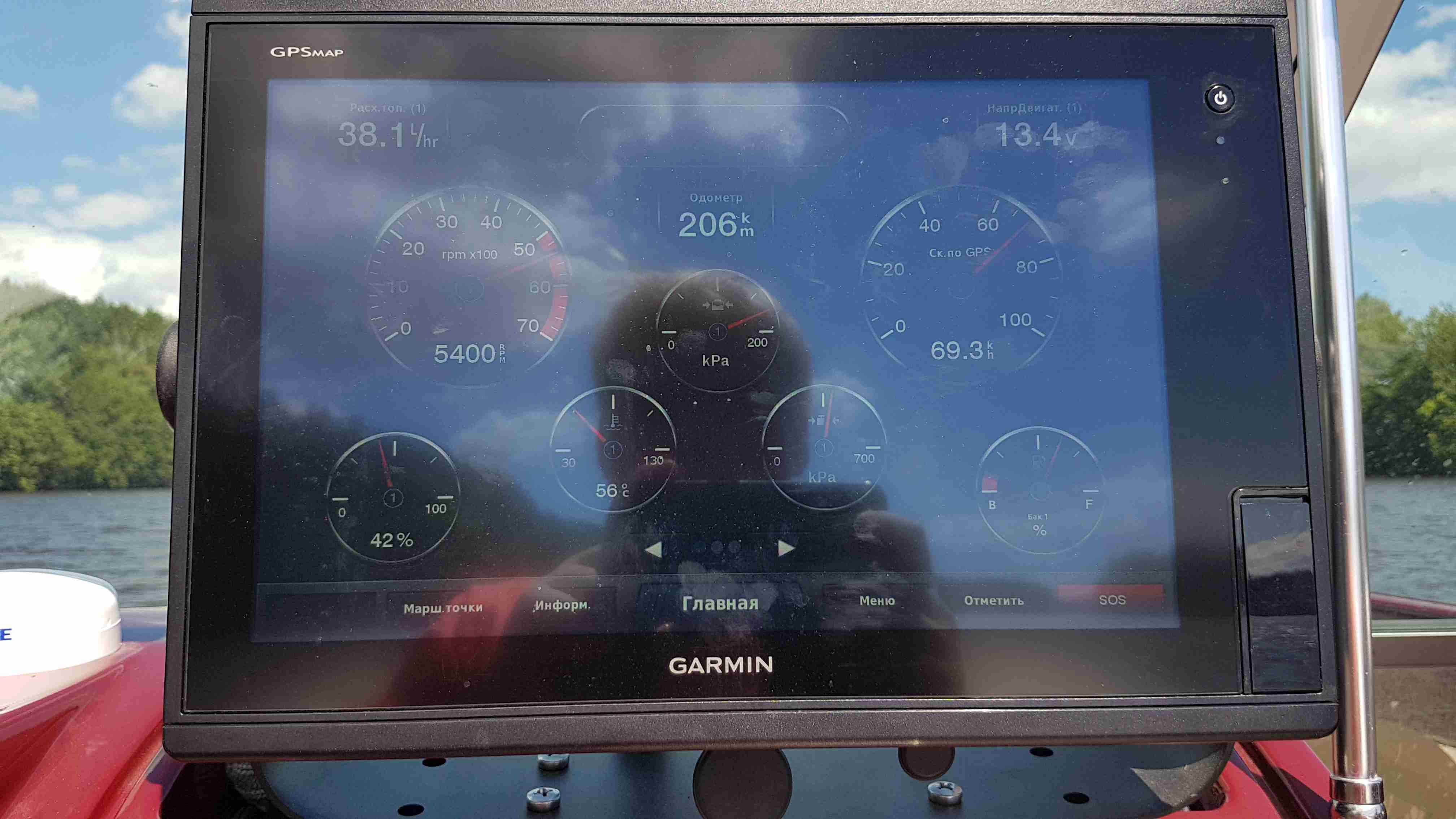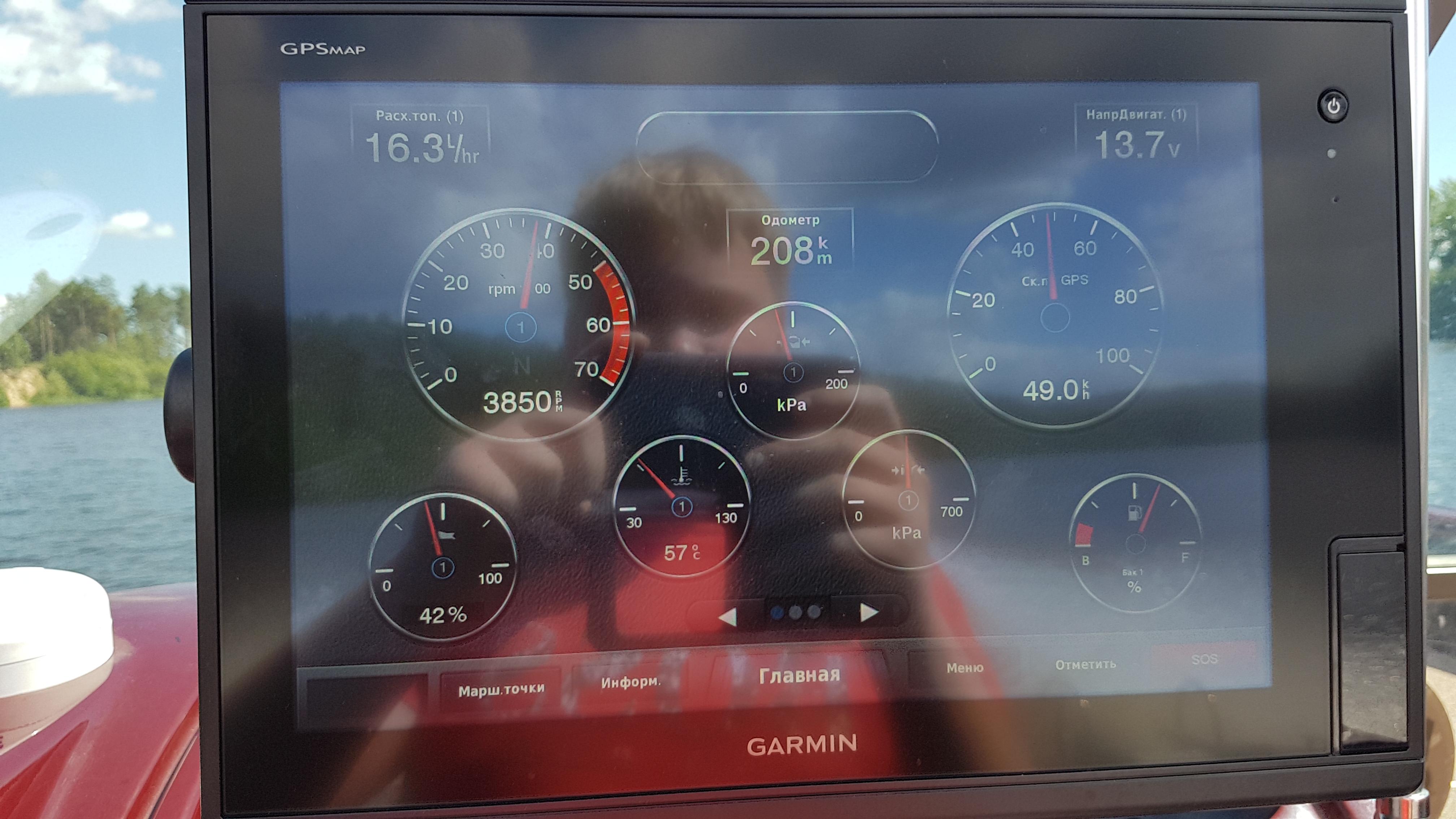 У меня загрузка была на том фото где 5550 об. 3 чел 85+85+105 кг, практически полный бак, MG, 3 батареи, тент + кг 30 свинца и приманок, ну и закуска, конечно