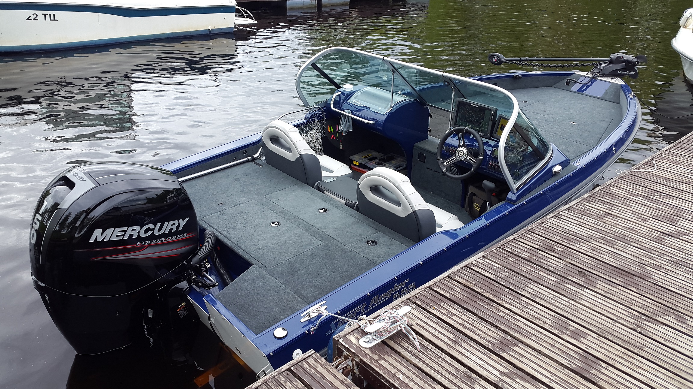 Сегодня опробовал комплект. Катнул три часика и дал полную тапку несколько раз кратко временно.На носу МГ-24в, два 95ых АКБ по центру заднего рундука, там же зарядка,80л Бенза. Трое человек общим весом 250кг, винт БЛЭК Макс 13х19". На глисс не быстро, но и не напряжно, 4000об/мин-50км/ч, 5500-5600об/мин 68км/ч. В одного 5600-70км/ч.по мне так Макс оборотов маловато. Сильно показалось, что нужна нержавейка. Мотор в самом нижнем положении, плита чуть выше низа киля-около сантима. По ощущениям хочется тримануться больше, чтоб оборотиков прибавилось, но винт теряет упор. В статике лодка гораздо интереснее 475ого, сильно заметно. Пока не понял с развесовкой, но точно на корму груза больше не нужно. Попробовал скакнуть по волнам, понравилось, думаю что осенью смотреть в прогнозе на скорость ветра, буду смелее))). Скорость 70км/ч ощущается, но дискомфорта нет. Кстати пневмо стойка вписалась под мой рост 182см -идеально и спрятаться можно за стекло полностью и подняться глазами выше стекла. Вообщем как то так пока)).