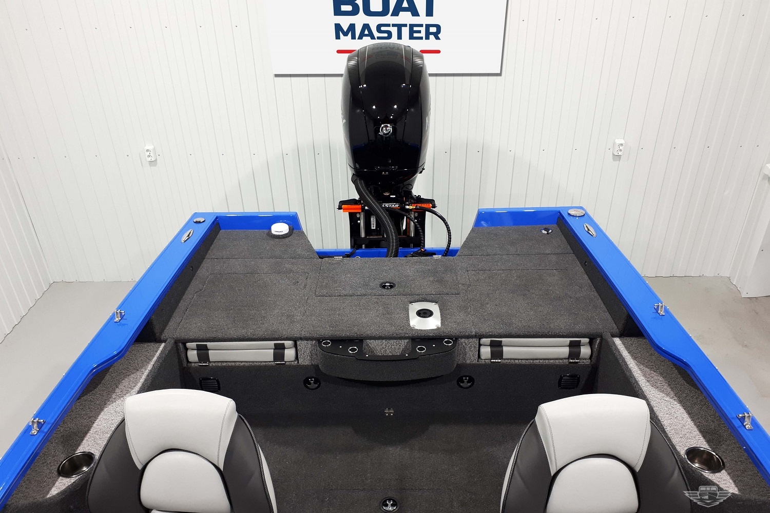 Привет друзья! Предлагаю делится в этой теме интересными установками доп. оборудования на моторные лодки Finval. На правах автора темы представляю Вам проект на базе корпуса Finval 555 FishPro, подготовленный в нашем техническом центре Boatmaster.PRO Проект называется – Жемчужина Саратова. Долго думать над названием проекта не пришлось, в конце этого обзора мы обязательно расскажем, как появилось это название. Давайте поближе познакомимся с этим интересным проектом. По традиции начнем обзор с носа лодки. На носовой потопчине расположился электромотор с функцией якоря – MotorGuide Xi536V Pinpoint GPS и розетка для подключения экшн-камеры. Носовая палуба отделана морским ковролином Syntec. Кокпит моторной лодки, так же отделан ковролином Syntec. Для жаркого климата Саратова, куда отправляется этот красавец - это наилучший выбор. Под лучами солнца винил разогревается до весьма высоких температур, при контакте с открытыми участками кожи это может вызвать довольно сильный дискомфорт, а по ковролину даже в сорокаградусную жару можно ходить комфортно хоть босиком. Рабочее место судоводителя получилось очень функциональным и не перегружено излишними приборами. На капитанской консоли разместились два топовых прибора от Lowrance, HDS 9 и 12 Carbon. Картплоттер Lowrance HDS 12 Carbon, установлен на custom-кронштейн. Данные двигателя выводятся на компактный, но информативный MercMonitor и для удобства продублированы на мониторы рыбопоискового комплекса. Управление Power Lift вынесено на подрулевой переключатель от компании Teleflex. Коммандер газ-реверс – Mercury MPC 4000 (Generation II). Как известно, существуют два подхода к установке дополнительного оборудования. Первый – когда в интерьер вносятся минимальные изменения. Второй – когда дополнительное оборудование является центральной частью инсталляции и привлекает основное внимание. В этом проекте мы постарались совместить оба основных принципа. Для этого мы изготовили рундуки под консолями с применением ковролина, замков и алюминиевых рояльных петель, используемых на производстве моторных лодок Finval. Это позволило полностью вписать закрытые рундуки в стилистику интерьера кокпита. Но стоит открыть рундуки, и Вы можете видеть аккуратно скомпонованное дополнительное оборудование. В рундуке под консолью судоводителя разместились: блок предохранителей, Lowrance Structurescan 3D, шлюз Mercury Gateway и конденсатор. А выше гребенка Т-коннекторов сети NMEA2000. В рундуке под консолью пассажира, альтернатор Minn Kota MK 3DC. Ярусом выше, на алюминиевой силовой раме - сетевое зарядное устройство Dual Pro PS4. Данное зарядное устройство является одним из самых мощных на рынке и обладает зарядным током 15А на канал. Все четыре канала ЗУ получили маркировку для упрощения понимания пользователем процента заряда АКБ. Обычно группу тяговых батарей близко никто не фотографирует и показывают вот так, с расстояния. Мы же напротив, покажем максимально близко, потому что нам есть что показать. В рундуке разместились три тяговых АКБ Deka Intimidator 105 а/ч, ключ выключения питания, тепловой автомат цепи питания электромотора и тепловые автоматы цепей зарядных устройств. Все провода получили защитную оплетку, а АКБ маркировку. Каждый АКБ закреплен отдельным ремнем с талрепом и имеет достаточный зазор с соседней батареей. Также АКБ получили новые удобные ручки для монтажа и переноски. В трюмном пространстве разм