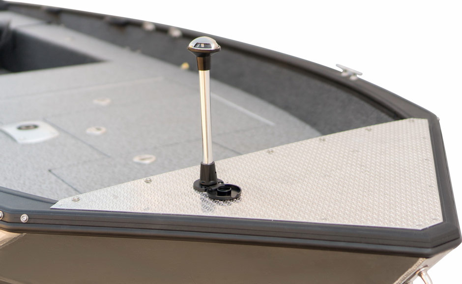1. В консольной версии внутренние борта, кокпит, а также кормовой и носовой подиумы выполнены из алюминия. Ни грамма фанеры! 2. Все без исключения рундуки в лодке сухие. 3. По правому борту на новой платформе появился вместительный рундук с замком на пять спиннингов длиной до 2.3 метра. Рундук для спиннингов по левому борту, так же как и в румпельной версии, способен принять спиннинги до 3-х метров длиной. 4. Рундуки носовой палубы стали более вместительные. Центральный рундук с одной большой крышкой - удобно складывать крупногабаритные вещи. 5. Аэратор на 63 литра также немного доработан. Теперь он оборудован таймером. Управление аэратором расположено на консоли слева. 6. Справа на консоли блок управления электрооборудованием лодки аналогичный модели 475 Evo 7. Съемные ходовые огни теперь в Базовой комплектации лодки. 8. Хочу обратить внимание на фурнитуру в лодке. Швартовочные утки и ручки рундуков, часть из которых оборудованы замком, теперь из нержавеющей стали. И это также Базовая комплектация. Продолжение следует