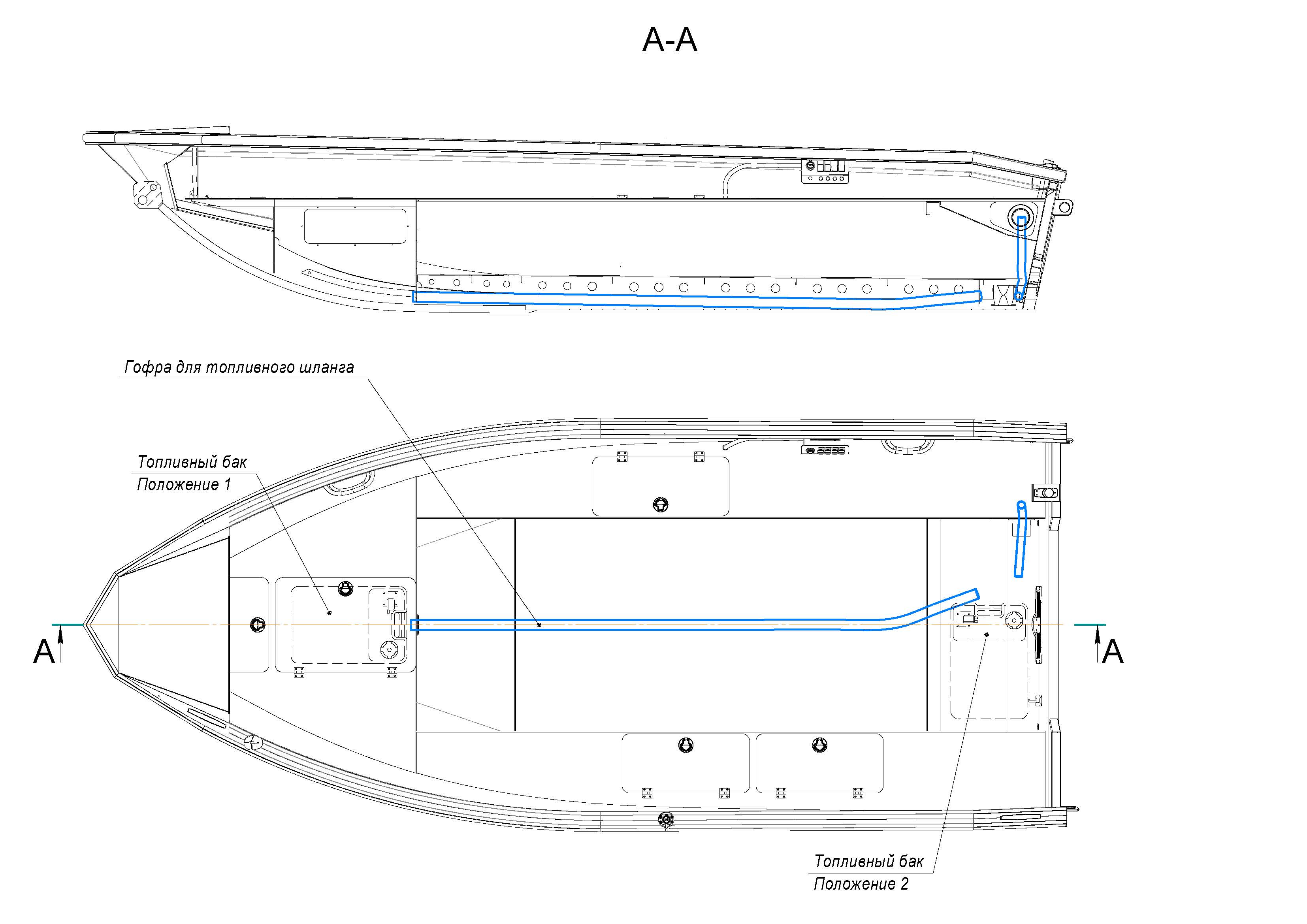Надаємо схеми розміщення паливного та електричного кабель-каналів у моделі GELEX 390 Light