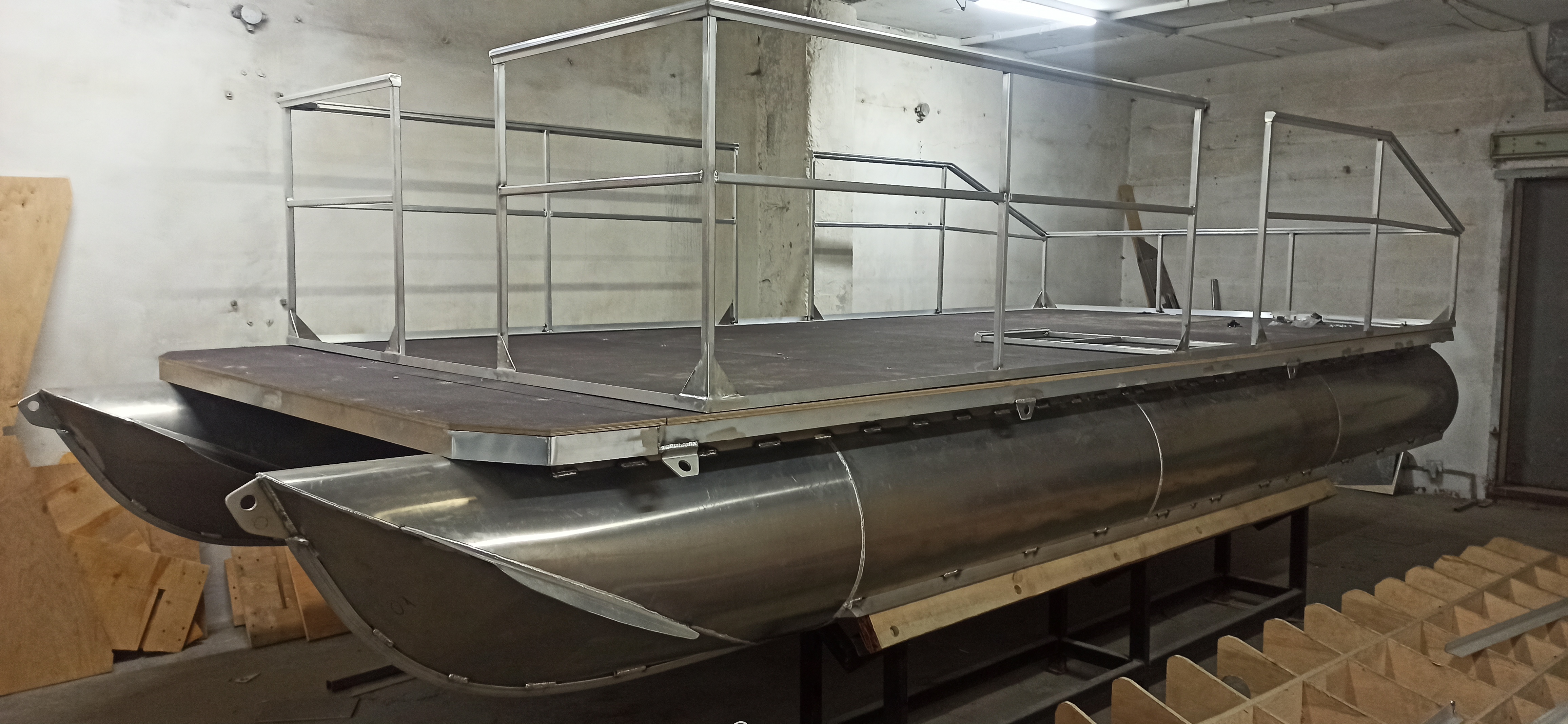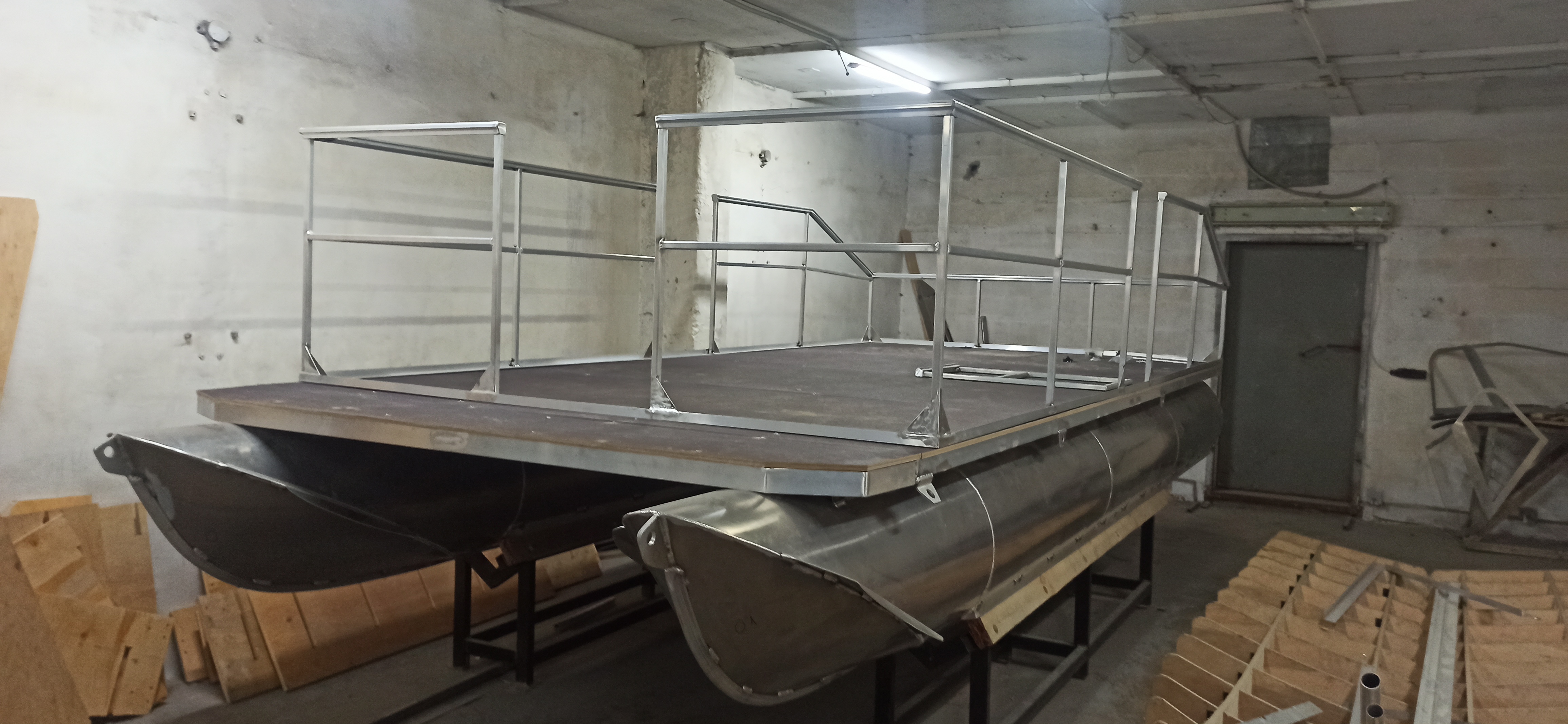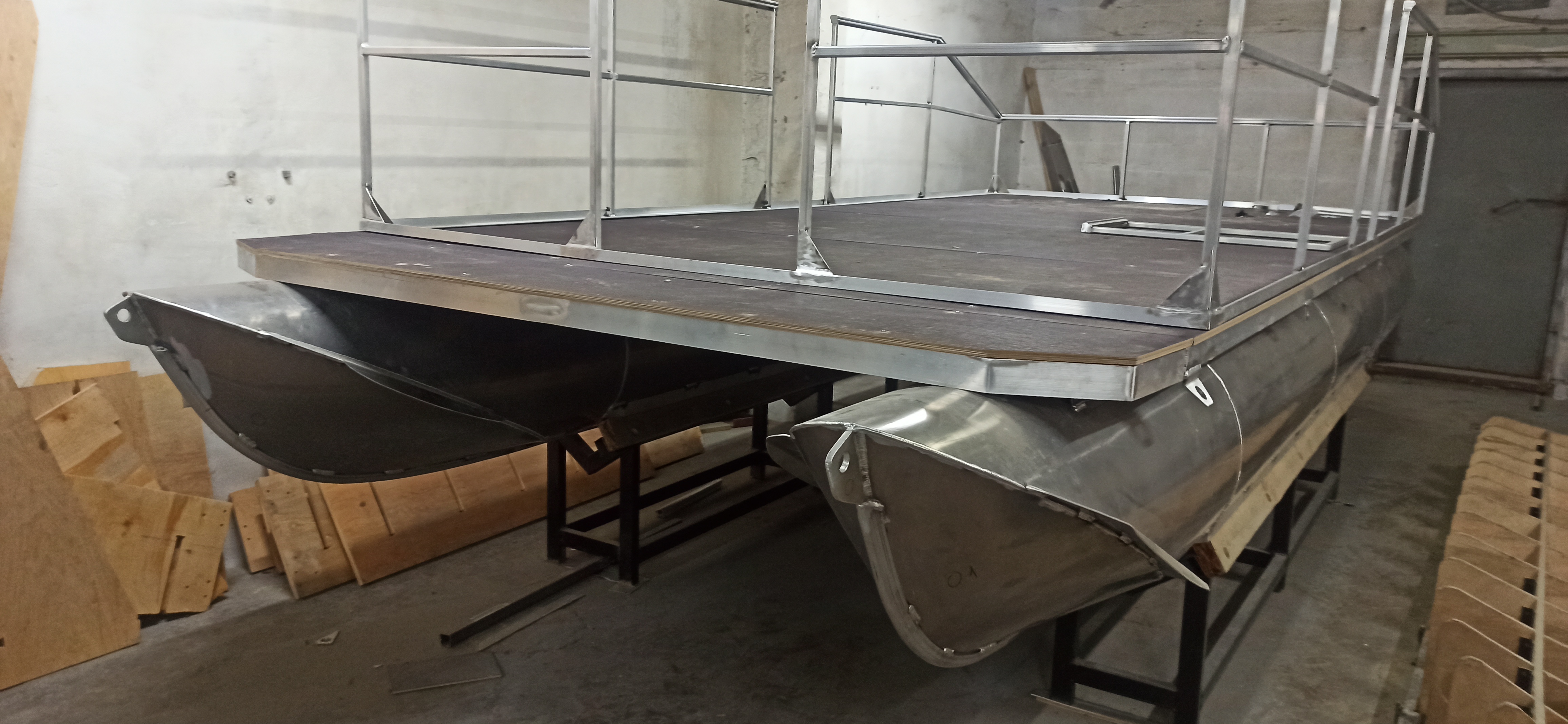 На завершальному етапі роботи по проекту Понтон. Ширина понтона 2550мм Довжина 6150мм , або крок збільшення 1450мм. Абсолютно все зварено, зігнуто з Амг5 , сплав 5083 , 3мм Бажаю усім вдалого життя!